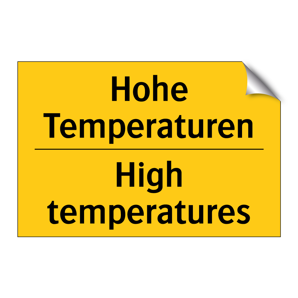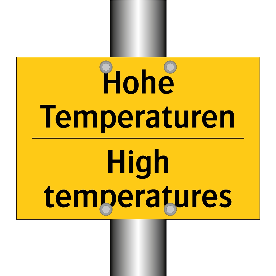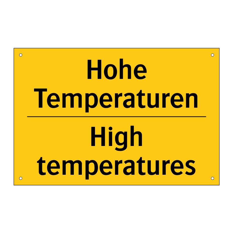 Zweisprachiges Warnschild mit deutschem Text Hohe Temperaturen und englischem Text High temperatures