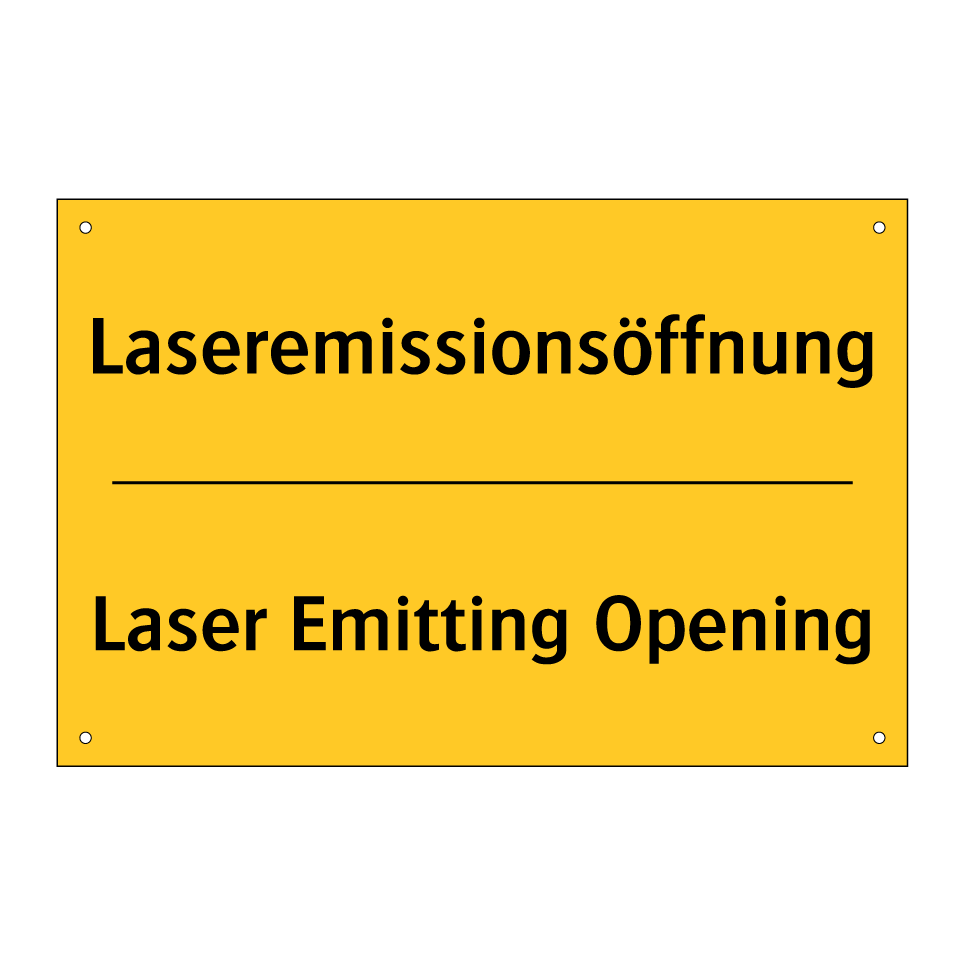 Zweisprachiges Warnschild mit deutschem Text Laseremissionsöffnung und englischem Text Laser Emitting Opening