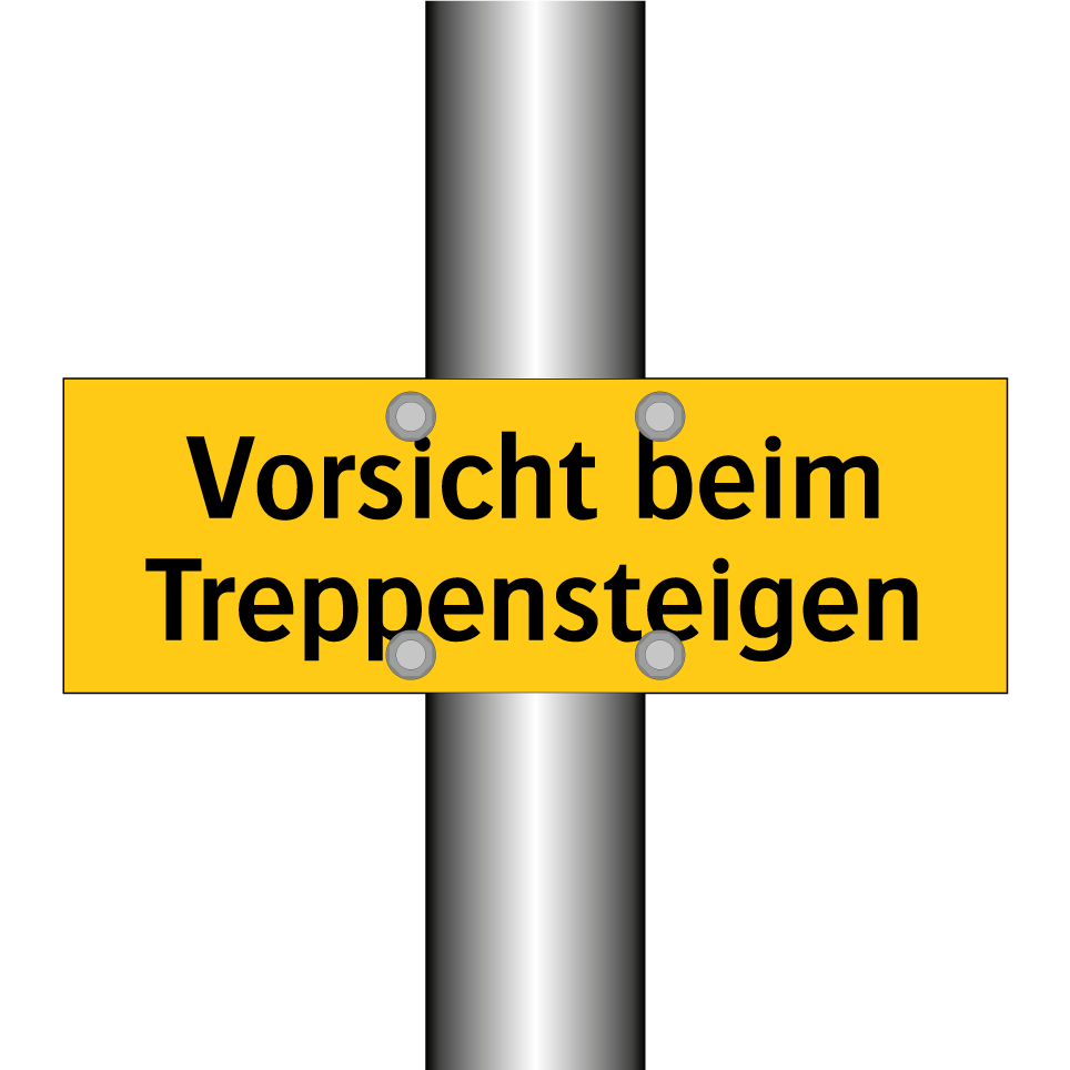 Warnschild mit dem Text Vorsicht beim Treppensteigen