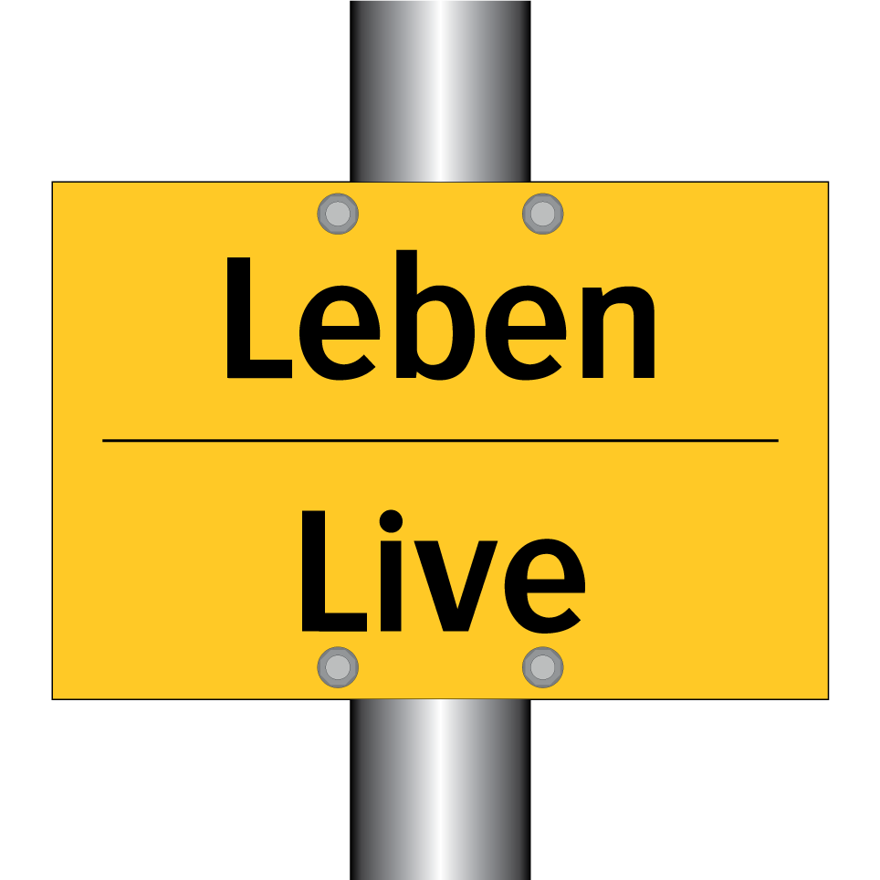 Zweisprachiges Warnschild mit deutschem Text Leben und englischem Text Live