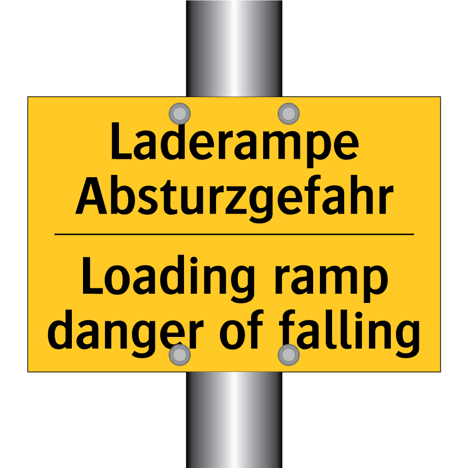 Zweisprachiges Warnschild mit deutschem Text Laderampe Absturzgefahr und englischem Text Loading ramp danger of falling