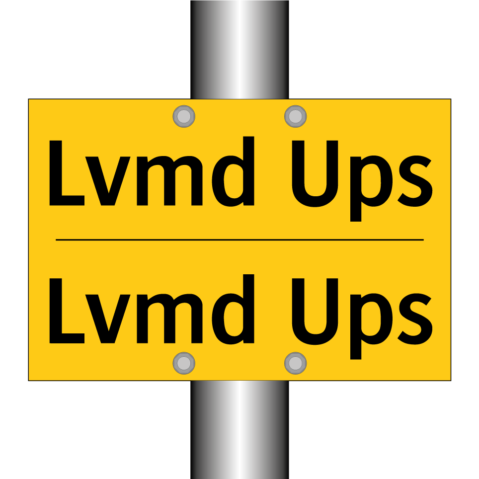 Zweisprachiges Warnschild mit deutschem Text Lvmd Ups und englischem Text Lvmd Ups