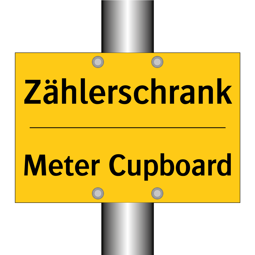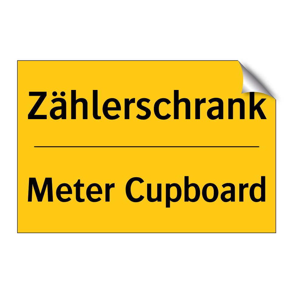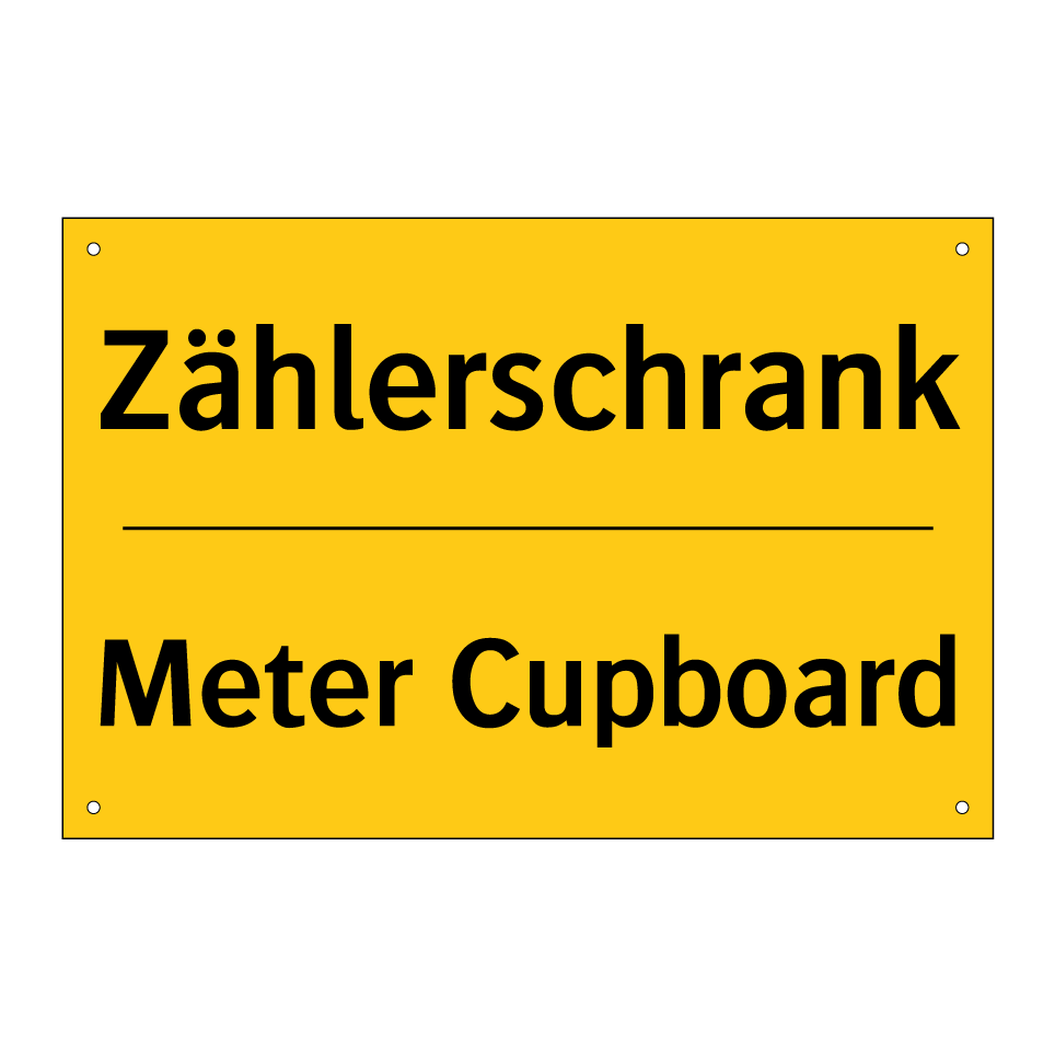 Zweisprachiges Warnschild mit deutschem Text Zählerschrank und englischem Text Meter Cupboard