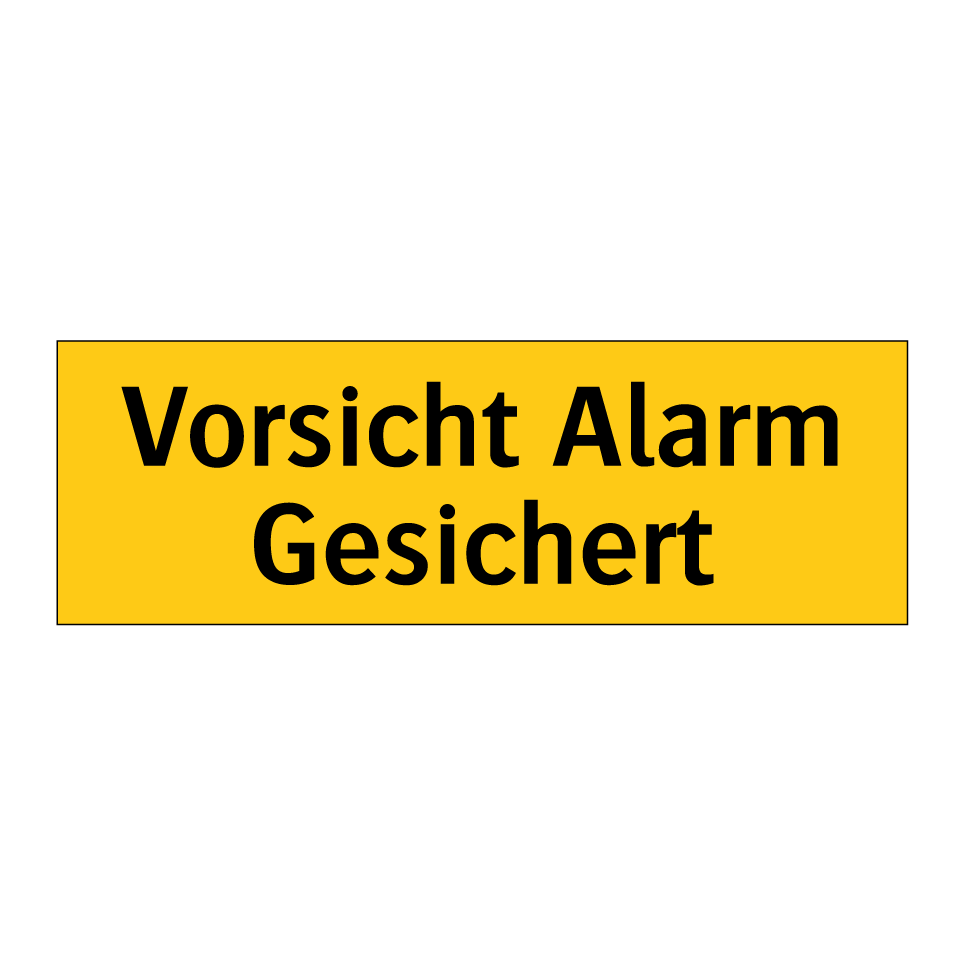 Warnschild mit dem Text Vorsicht Alarm Gesichert