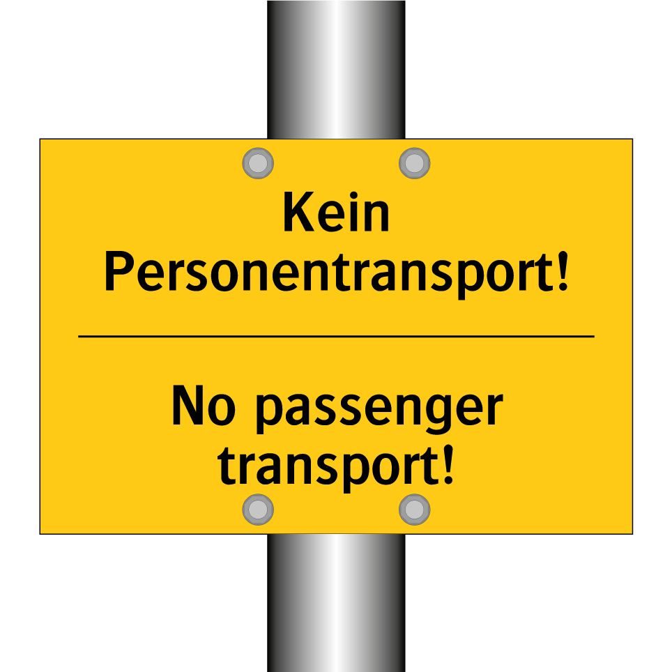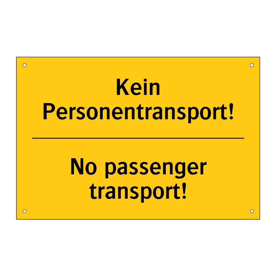 Zweisprachiges Warnschild mit deutschem Text Kein Personentransport! und englischem Text No passenger transport!