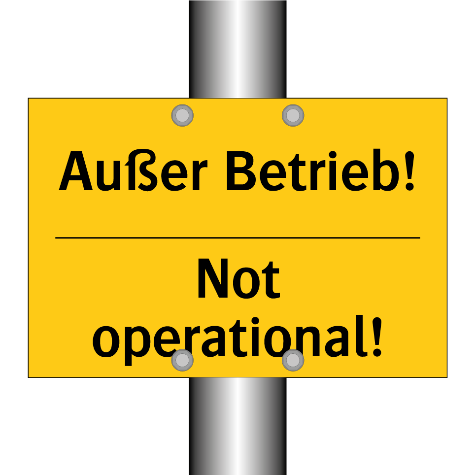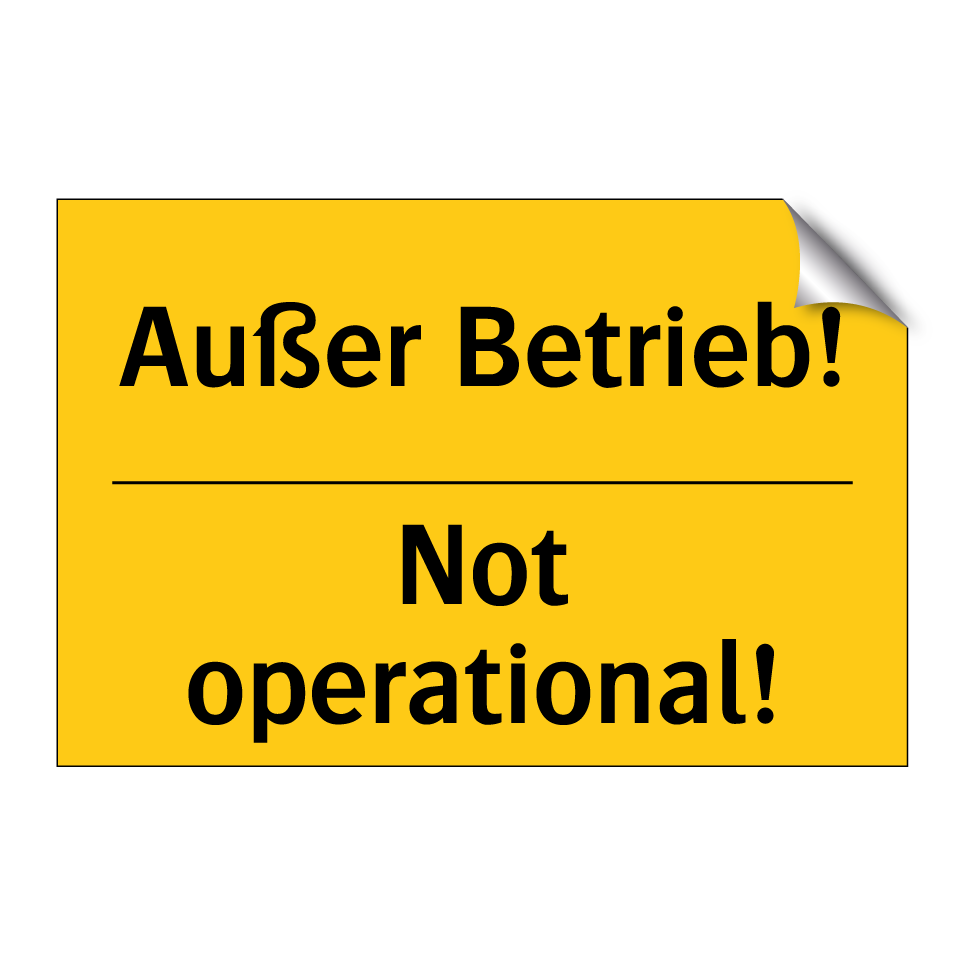 Zweisprachiges Warnschild mit deutschem Text Außer Betrieb! und englischem Text Not operational!