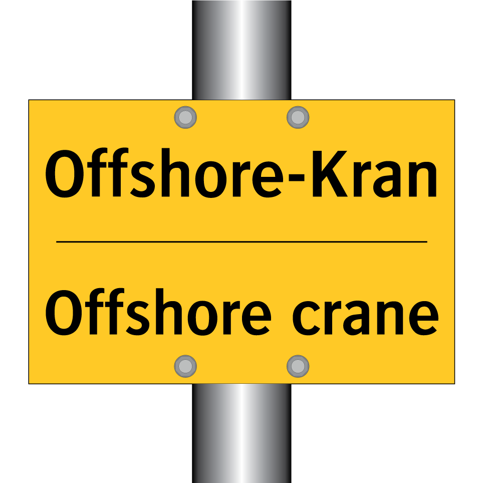 Zweisprachiges Warnschild mit deutschem Text Offshore-Kran und englischem Text Offshore crane