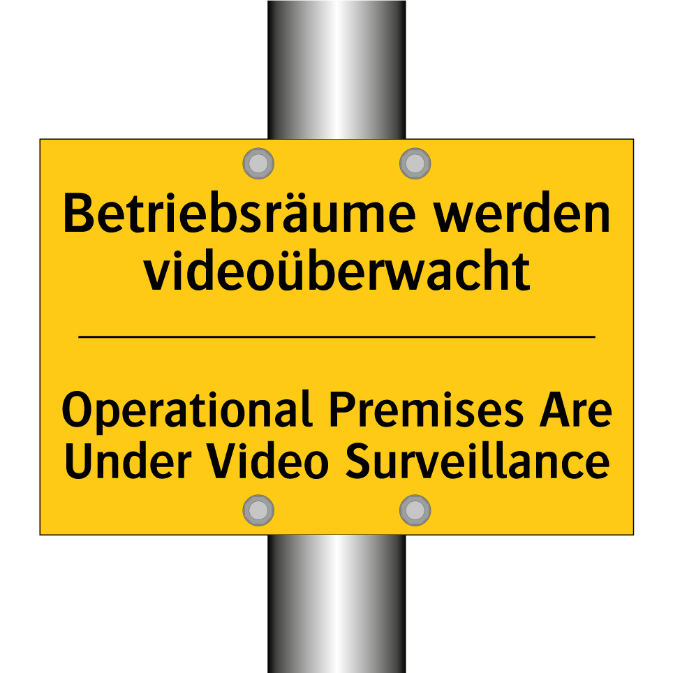 Zweisprachiges Warnschild mit deutschem Text Betriebsräume werden videoüberwacht und englischem Text Operational Premises Are Under Video Surveillance