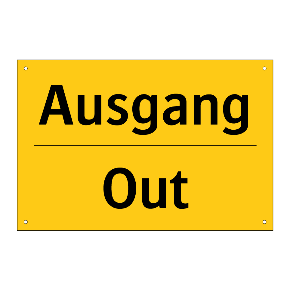 Zweisprachiges Warnschild mit deutschem Text Ausgang und englischem Text Out