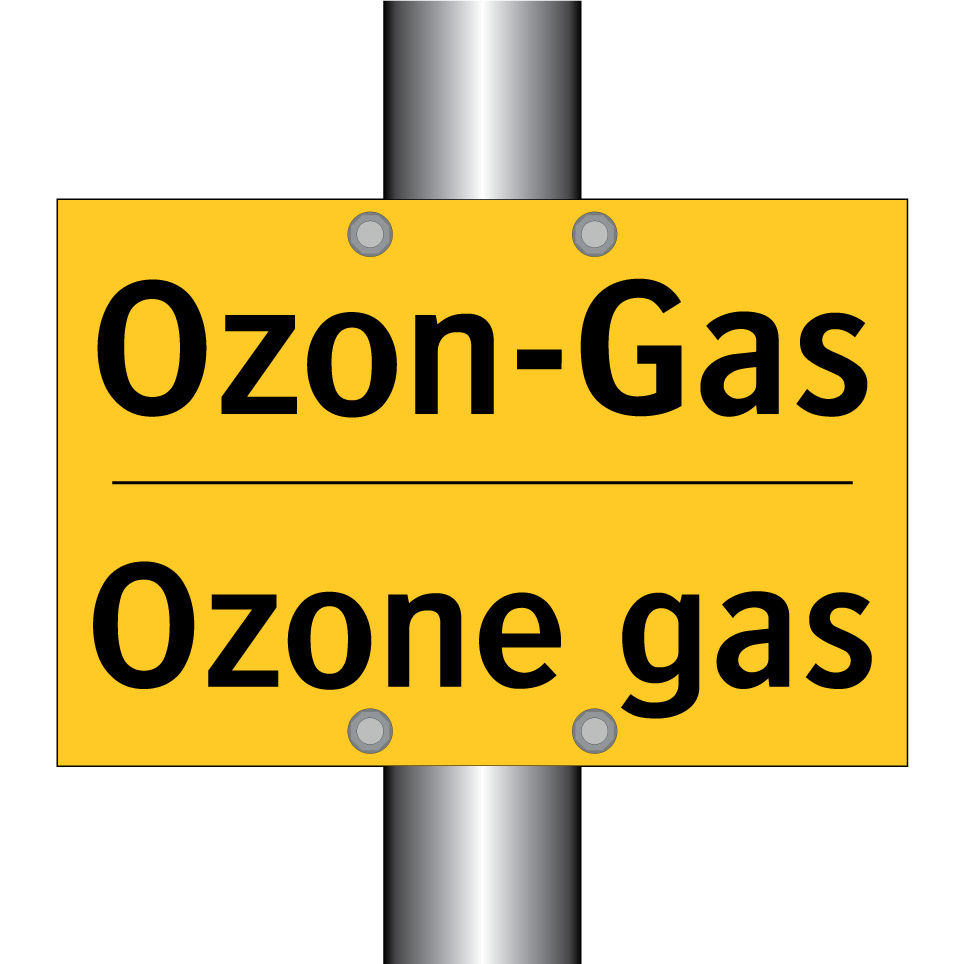 Zweisprachiges Warnschild mit deutschem Text Ozon-Gas und englischem Text Ozone gas