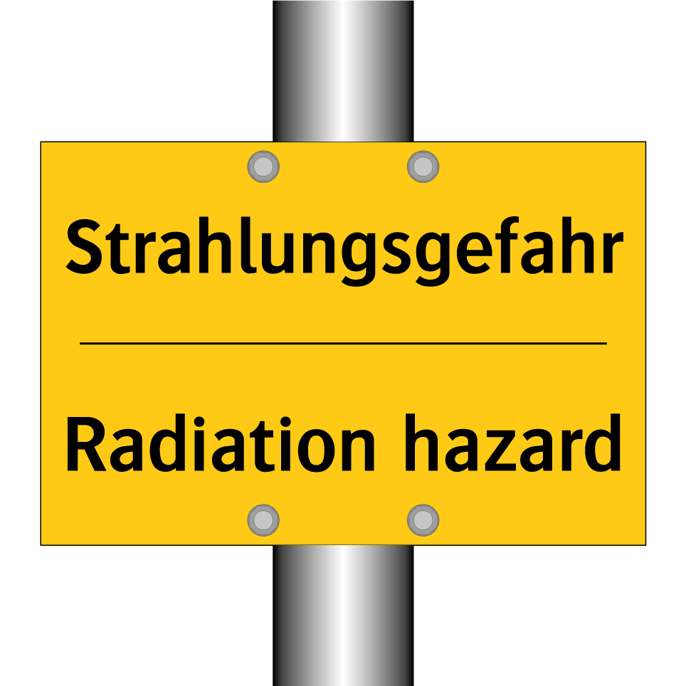 Zweisprachiges Warnschild mit deutschem Text Strahlungsgefahr und englischem Text Radiation hazard
