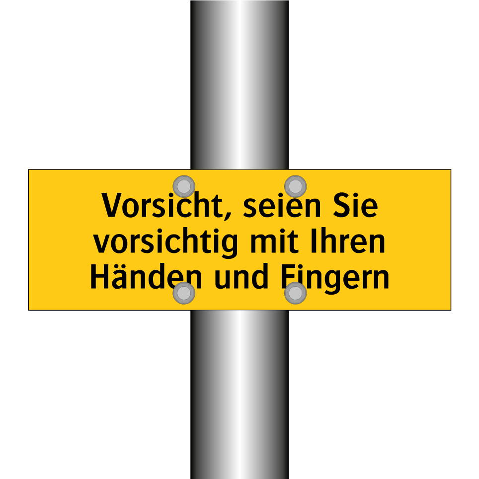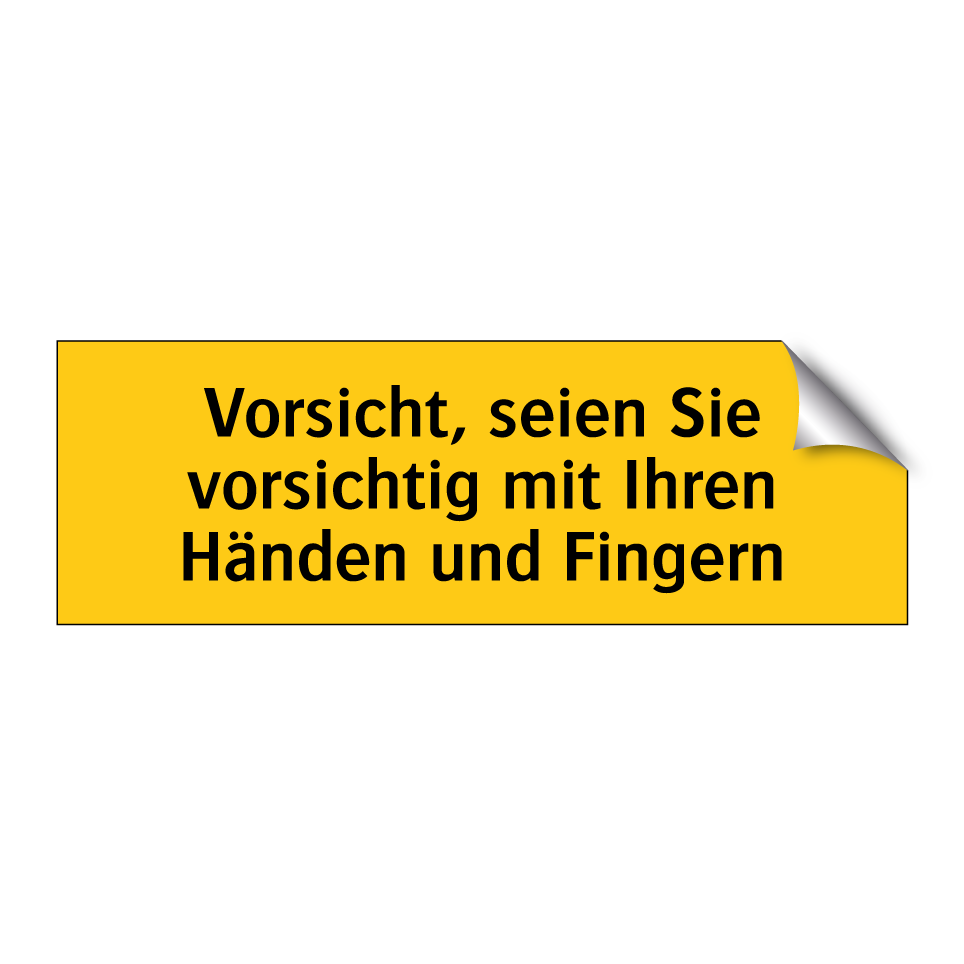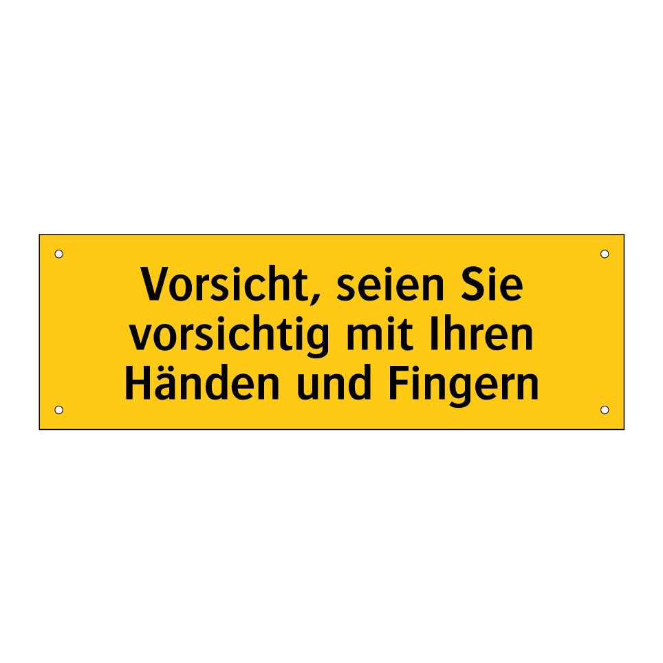 Warnschild mit dem Text Vorsicht, seien Sie vorsichtig mit Ihren Händen und Fingern