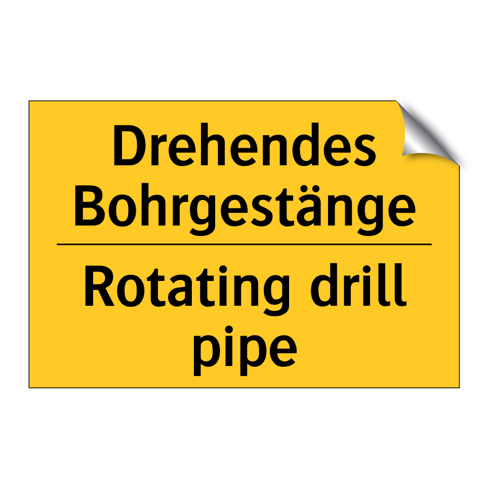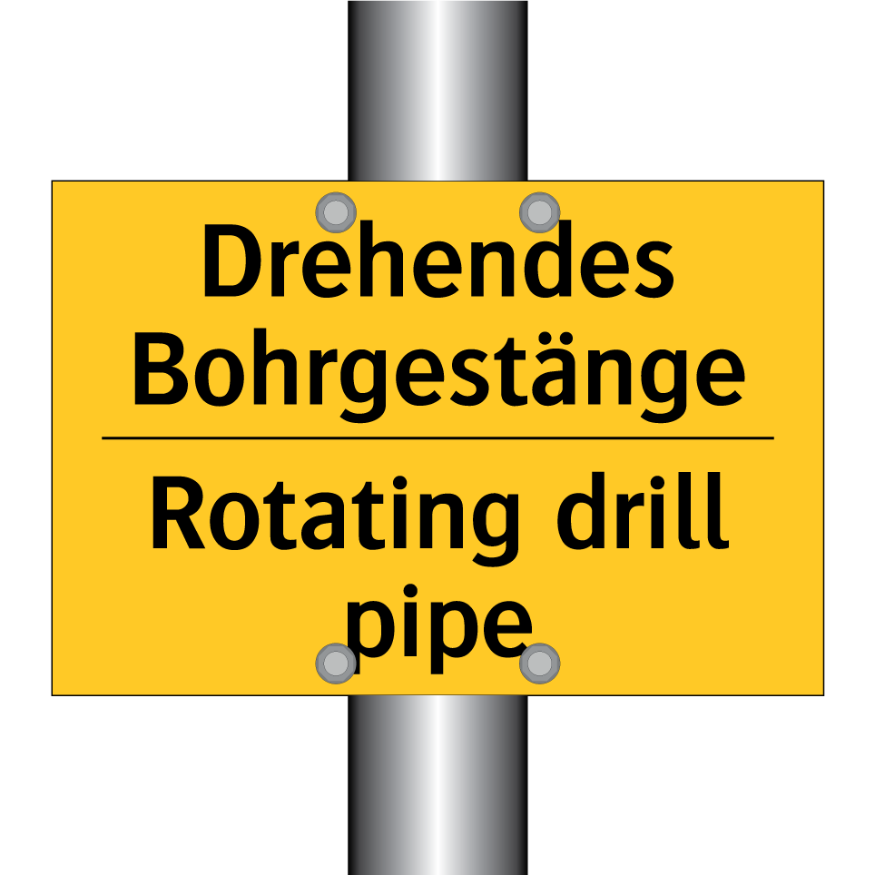 Zweisprachiges Warnschild mit deutschem Text Drehendes Bohrgestänge und englischem Text Rotating drill pipe