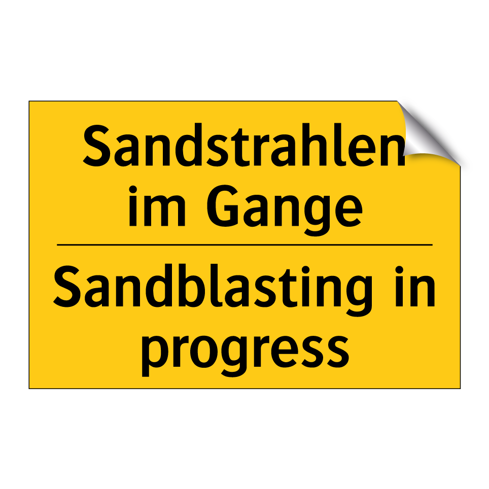 Diese auffällige Warnschild mit gelbem Hintergrund und schwarzer Schrift ist ideal, um auf laufende Sandstrahlarbeiten hinzuweisen. Dank der zweisprachigen Beschriftung auf Deutsch und Englisch eignet sich das Schild hervorragend für internationale Arbeitsumgebungen und sorgt für klare Kommunikation. Platzieren Sie es an Baustellen, in Werkstätten oder in industriellen Bereichen, um Mitarbeiter und Besucher vor potenziellen Gefahren zu warnen. Die deutliche Kennzeichnung hilft, Sicherheitsmaßnahmen zu verstärken und Unfälle zu vermeiden. Nutzen Sie diese Warnschilder, um die Sicherheit in Ihrem Arbeitsbereich zu erhöhen und gleichzeitig die Verständlichkeit für ein breiteres Publikum zu gewährleisten.