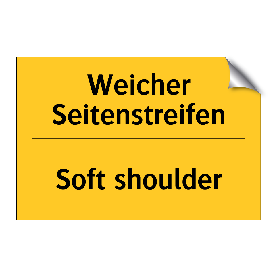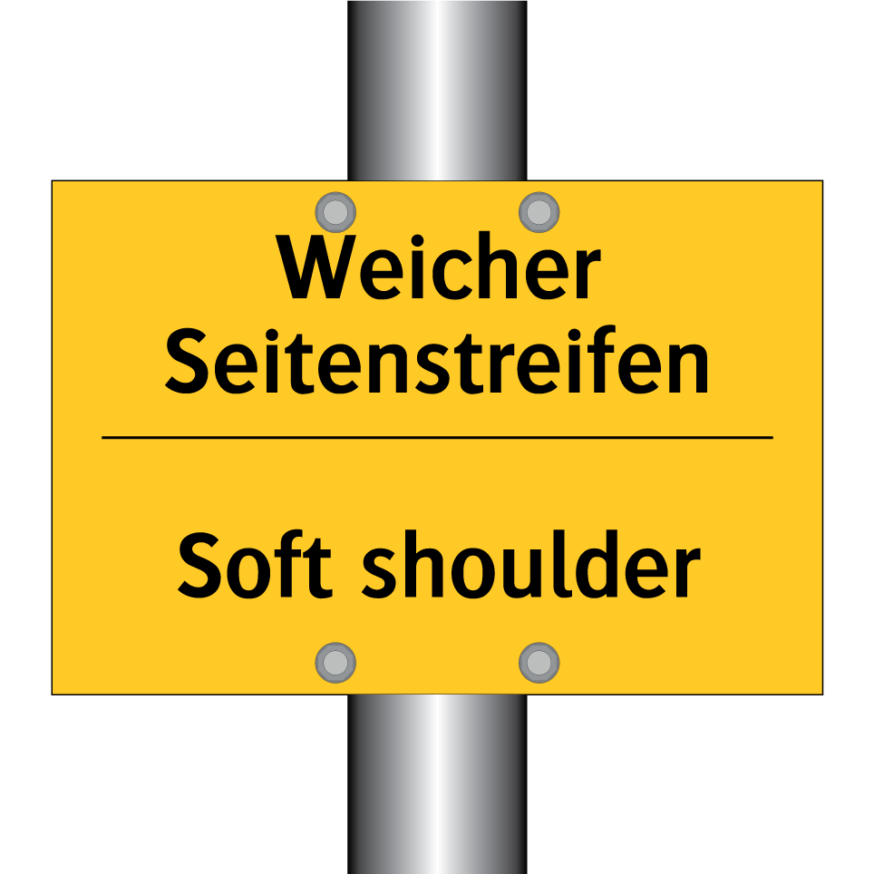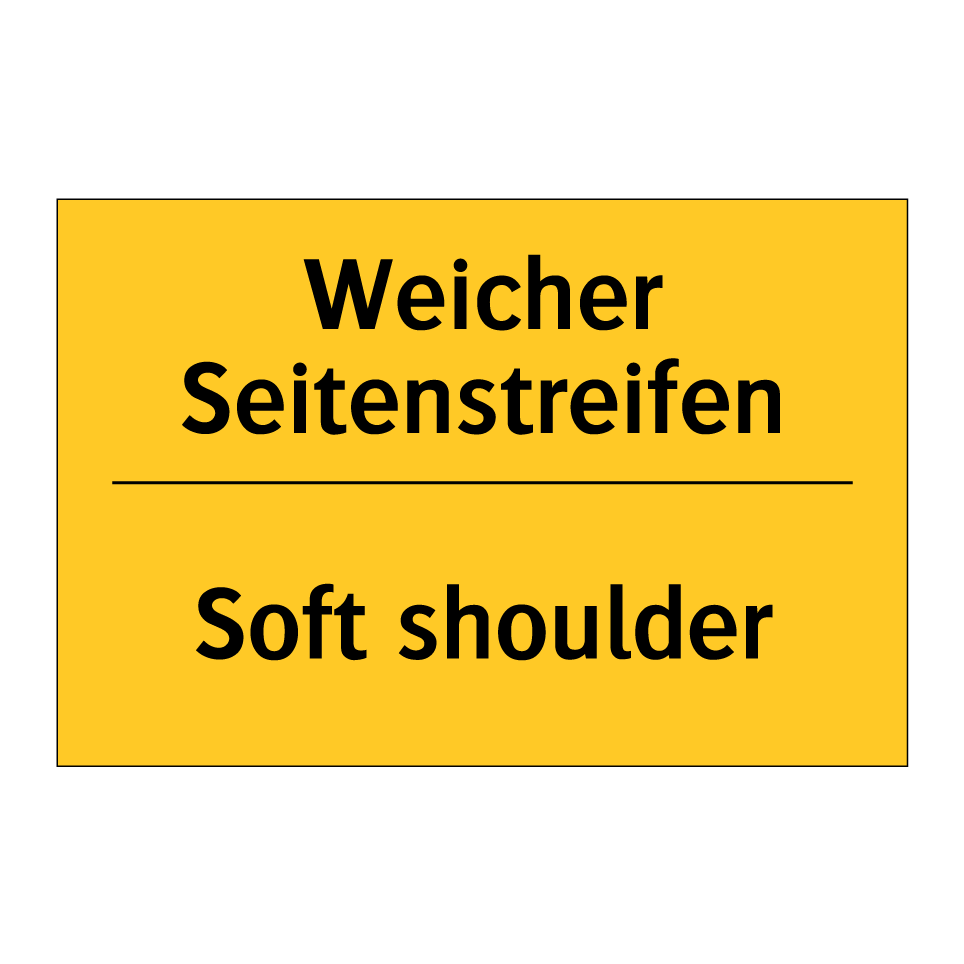 Zweisprachiges Warnschild mit deutschem Text Weicher Seitenstreifen und englischem Text Soft shoulder