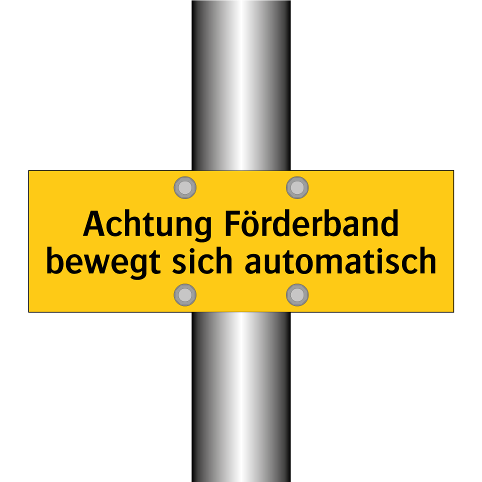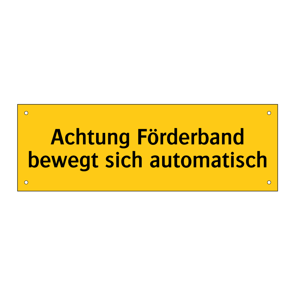 Warnschild mit dem Text Achtung Förderband bewegt sich automatisch