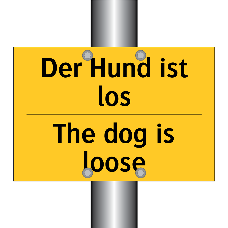 Entdecken Sie die vielseitige Einsatzmöglichkeit dieser zweisprachigen Warnschild mit gelbem Hintergrund und schwarzer Schrift. Die Warnung, dass der Hund frei herumlaufen könnte, ist sowohl auf Deutsch als auch auf Englisch verfasst, was sie ideal für internationale Umgebungen macht. Diese Warnschilder sind perfekt für den Einsatz in Bereichen, in denen Besucher auf die Anwesenheit eines Hundes aufmerksam gemacht werden müssen, wie zum Beispiel in Gärten, auf Höfen oder an Eingängen zu Privatgrundstücken. Die zweisprachige Beschriftung sorgt dafür, dass sowohl deutsch- als auch englischsprachige Personen die Botschaft sofort verstehen, was die Sicherheit für alle erhöht.