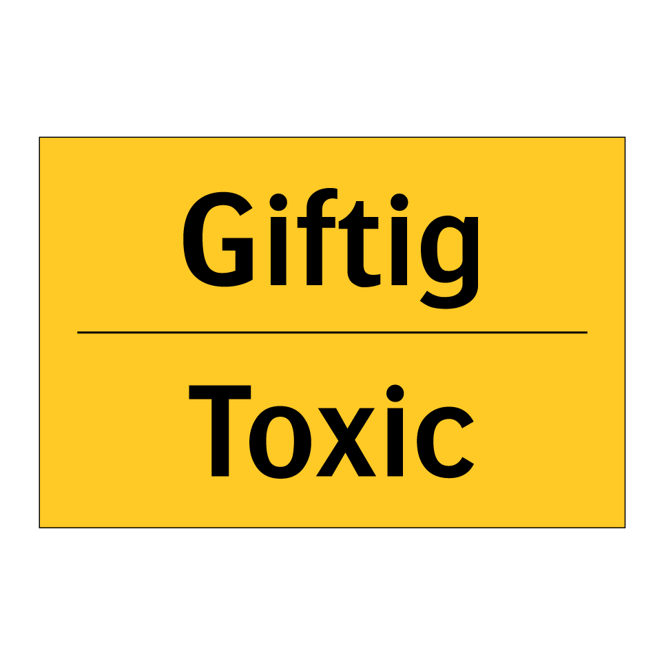 Zweisprachiges Warnschild mit deutschem Text Giftig und englischem Text Toxic