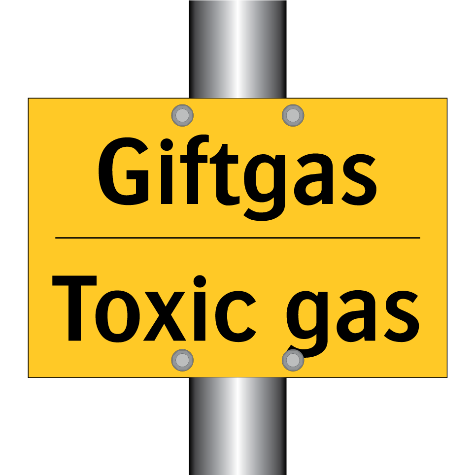 Zweisprachiges Warnschild mit deutschem Text Giftgas und englischem Text Toxic gas