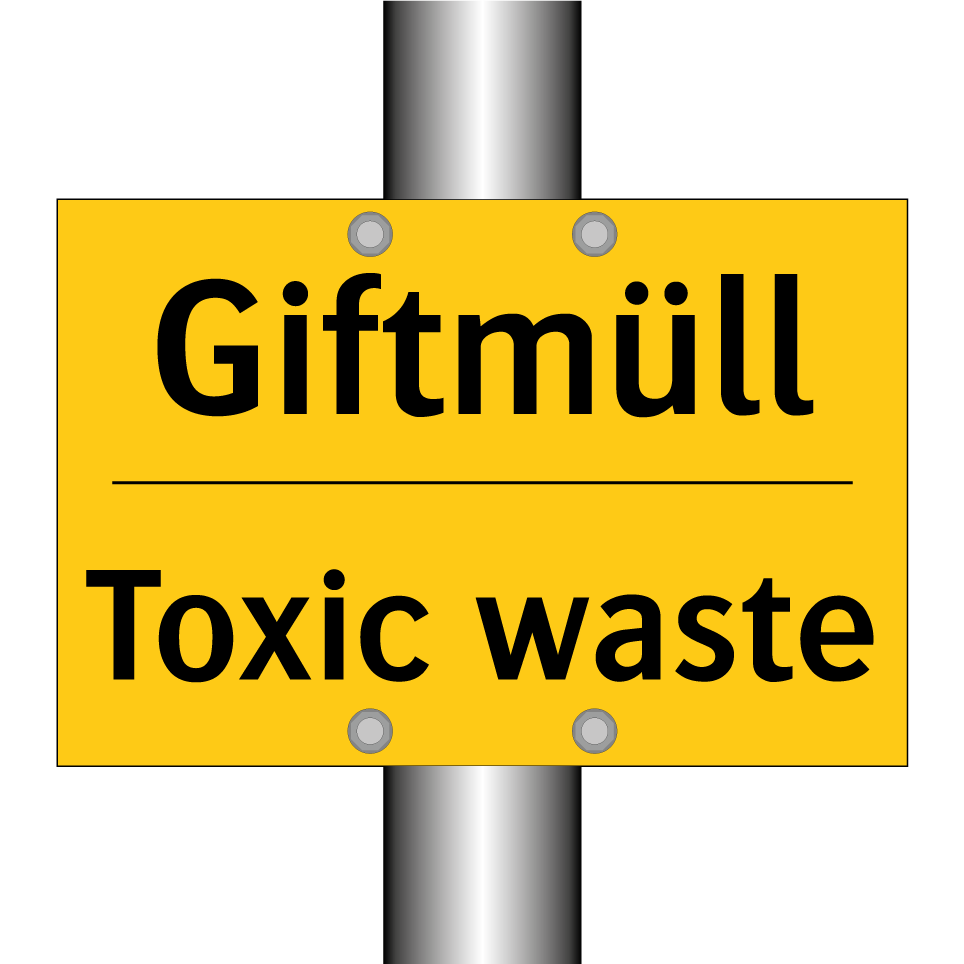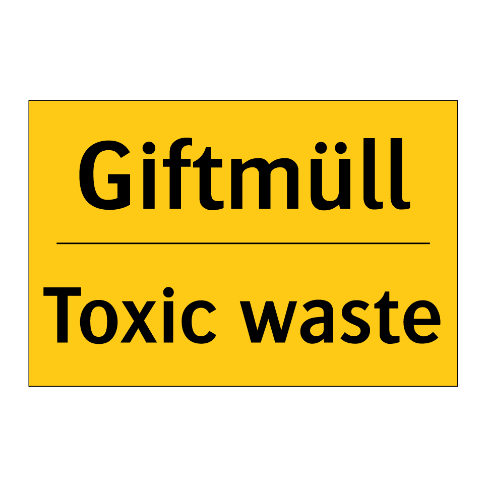 Zweisprachiges Warnschild mit deutschem Text Giftmüll und englischem Text Toxic waste