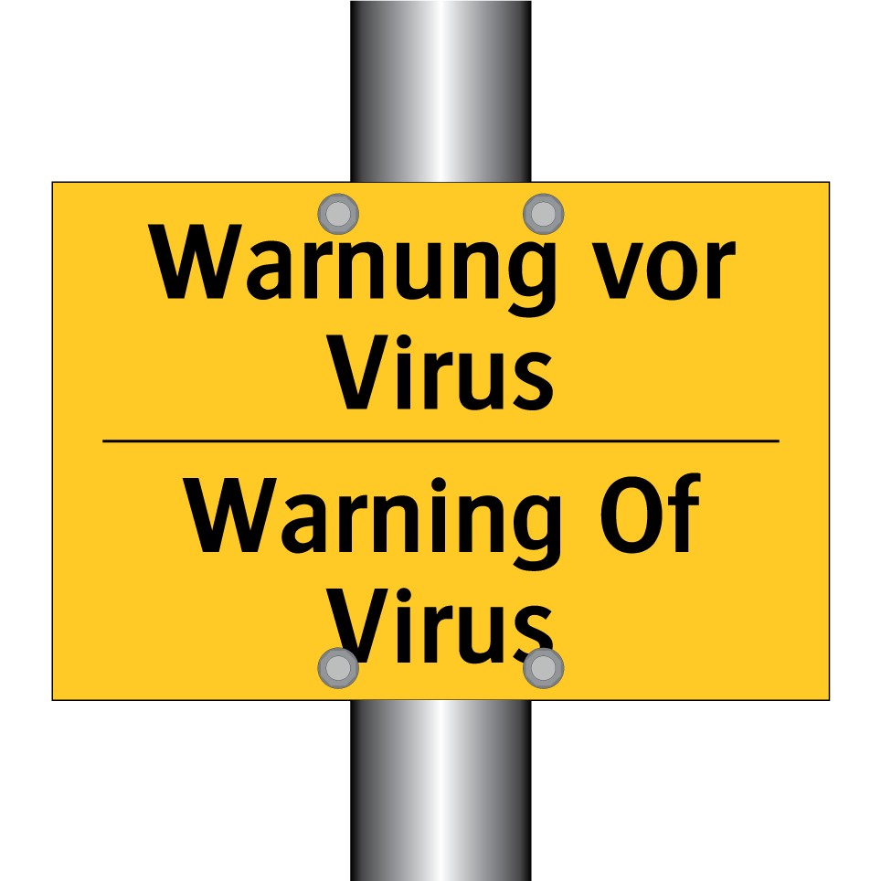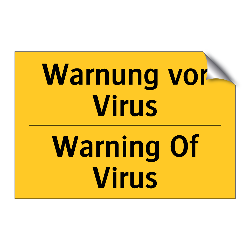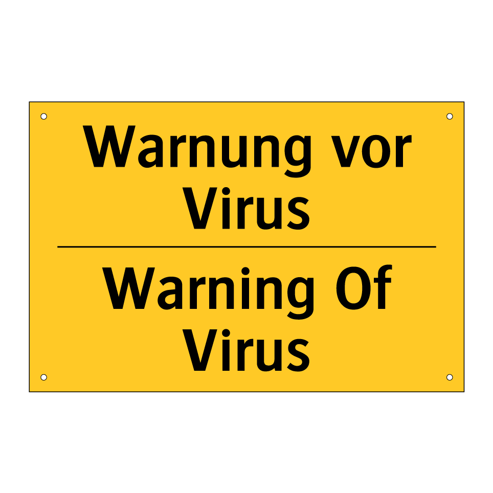 Zweisprachiges Warnschild mit deutschem Text Warnung vor Virus und englischem Text Warning Of Virus