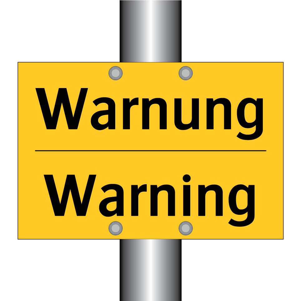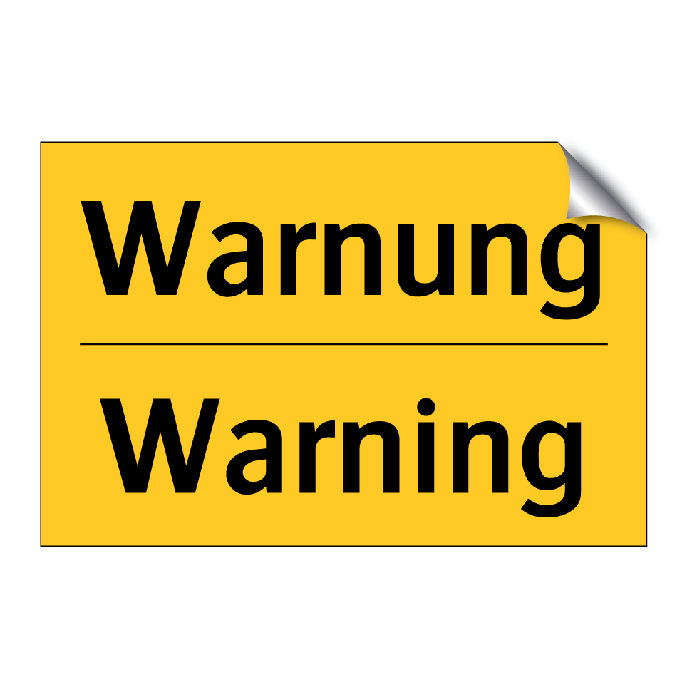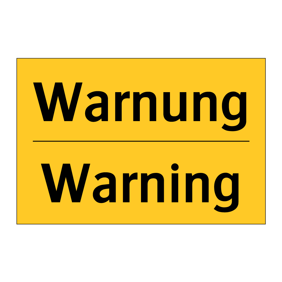 Zweisprachiges Warnschild mit deutschem Text Warnung und englischem Text Warning