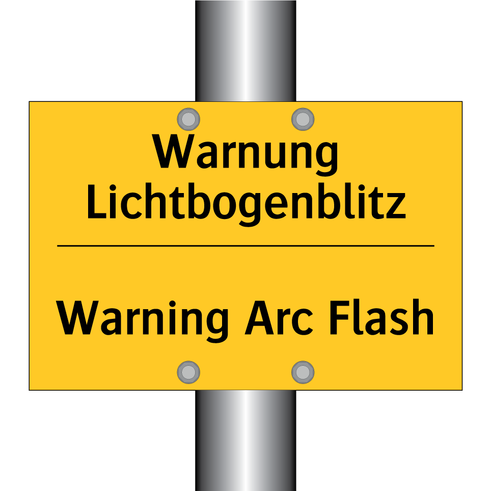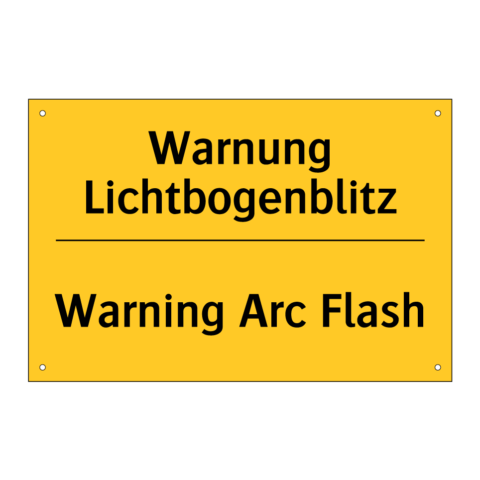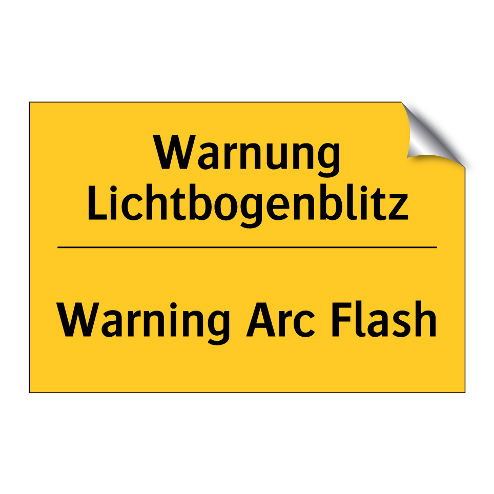 Zweisprachiges Warnschild mit deutschem Text Warnung Lichtbogenblitz und englischem Text Warning Arc Flash