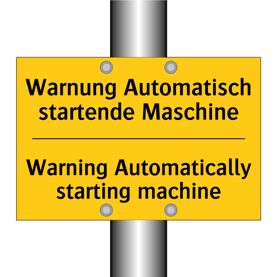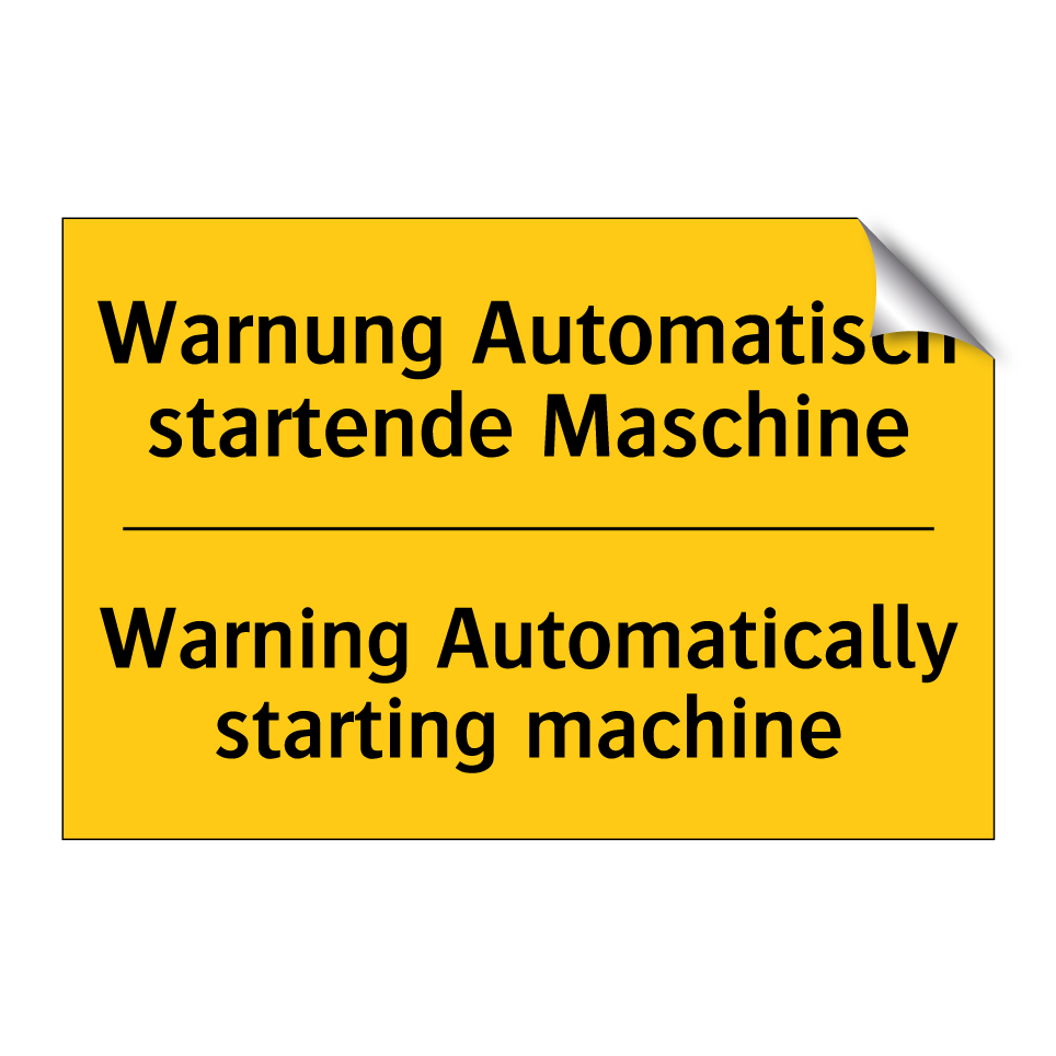 Zweisprachiges Warnschild mit deutschem Text Warnung Automatisch startende Maschine und englischem Text Warning Automatically starting machine