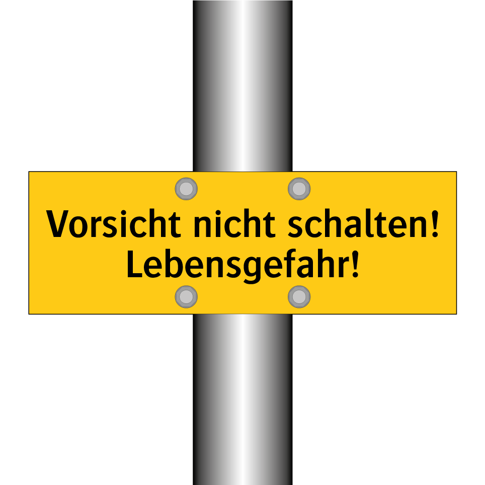 Warnschild mit dem Text Vorsicht nicht schalten! Lebensgefahr!