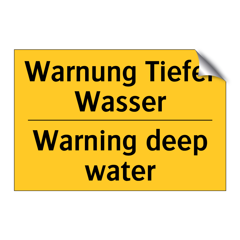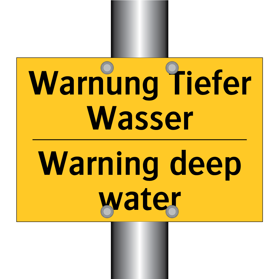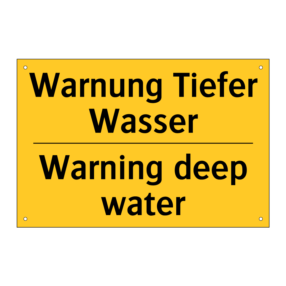 Zweisprachiges Warnschild mit deutschem Text Warnung Tiefer Wasser und englischem Text Warning deep water