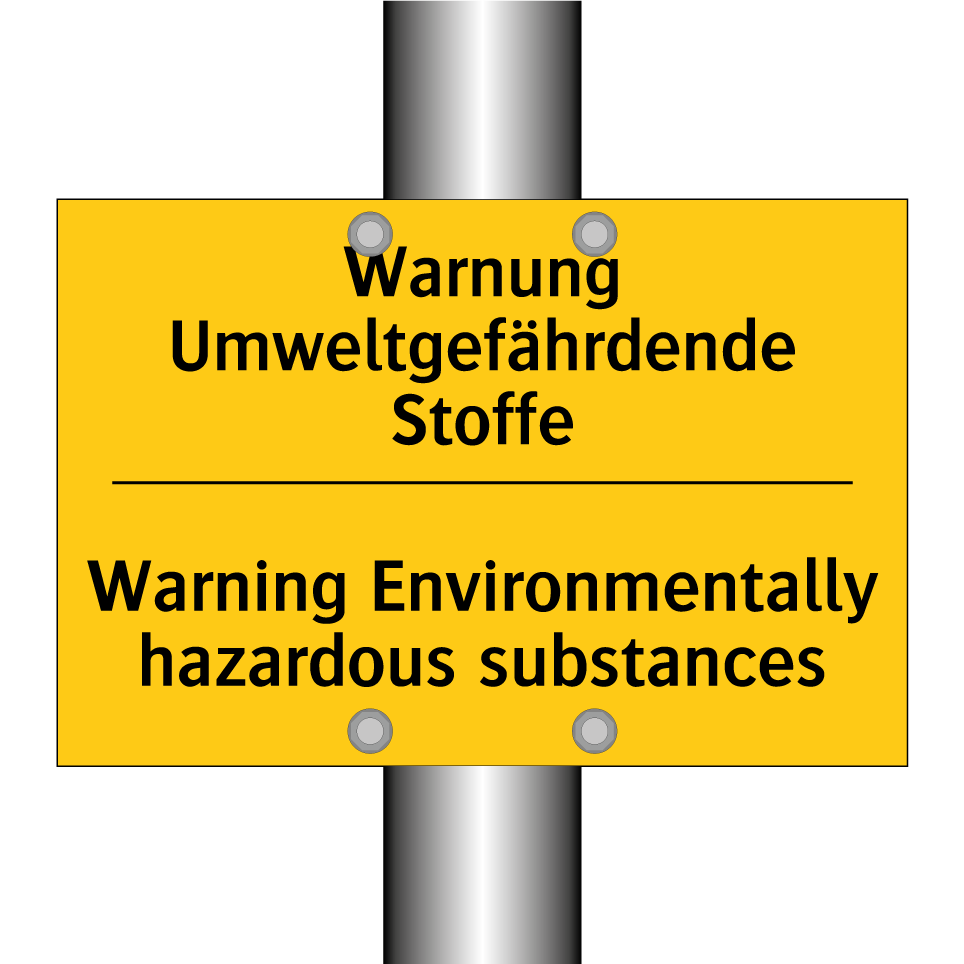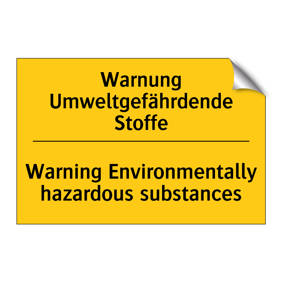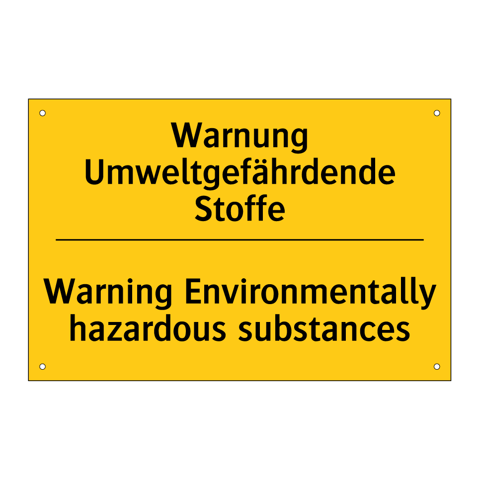 Zweisprachiges Warnschild mit deutschem Text Warnung Umweltgefährdende Stoffe und englischem Text Warning Environmentally hazardous substances