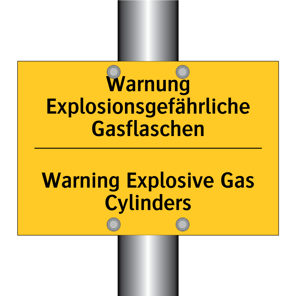 Zweisprachiges Warnschild mit deutschem Text Warnung Explosionsgefährliche Gasflaschen und englischem Text Warning Explosive Gas Cylinders