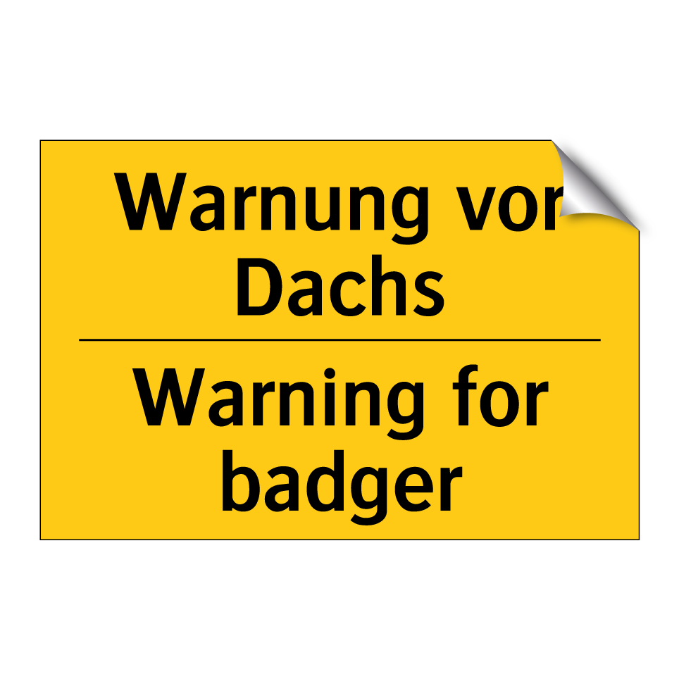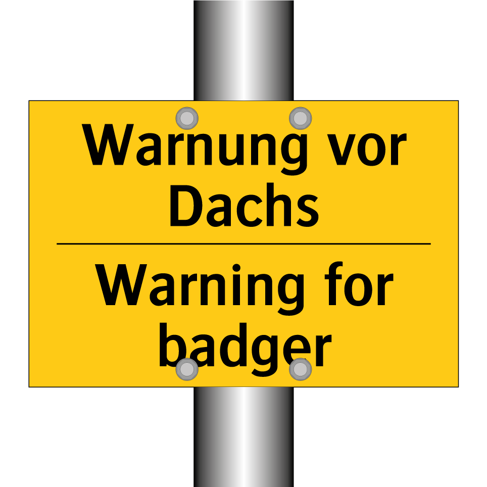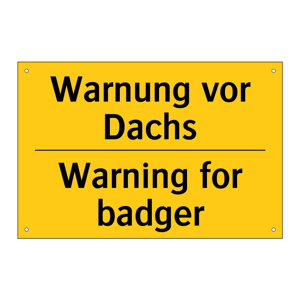 Zweisprachiges Warnschild mit deutschem Text Warnung vor Dachs und englischem Text Warning for badger