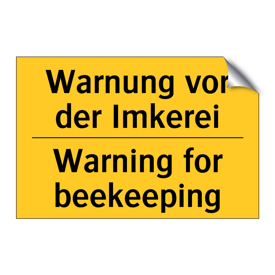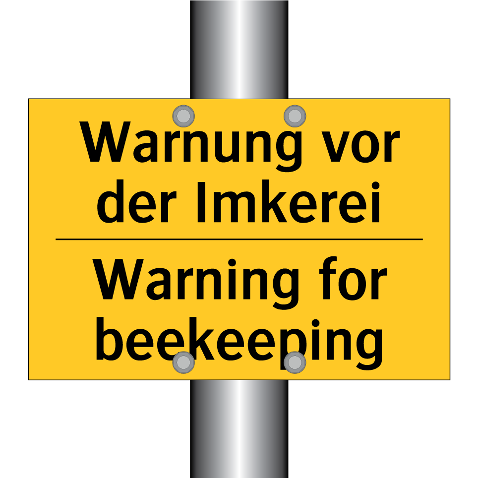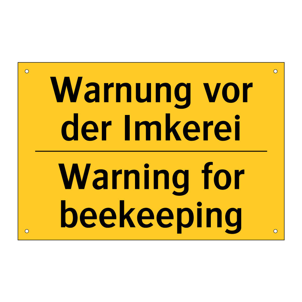 Zweisprachiges Warnschild mit deutschem Text Warnung vor der Imkerei und englischem Text Warning for beekeeping