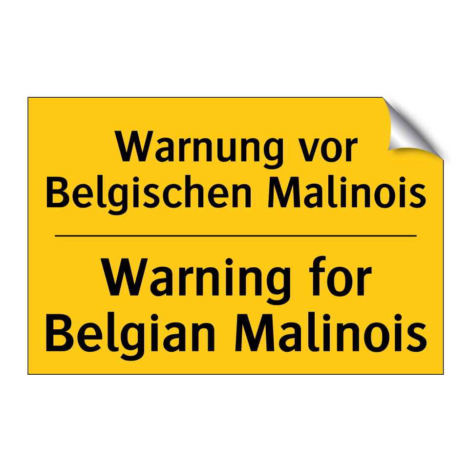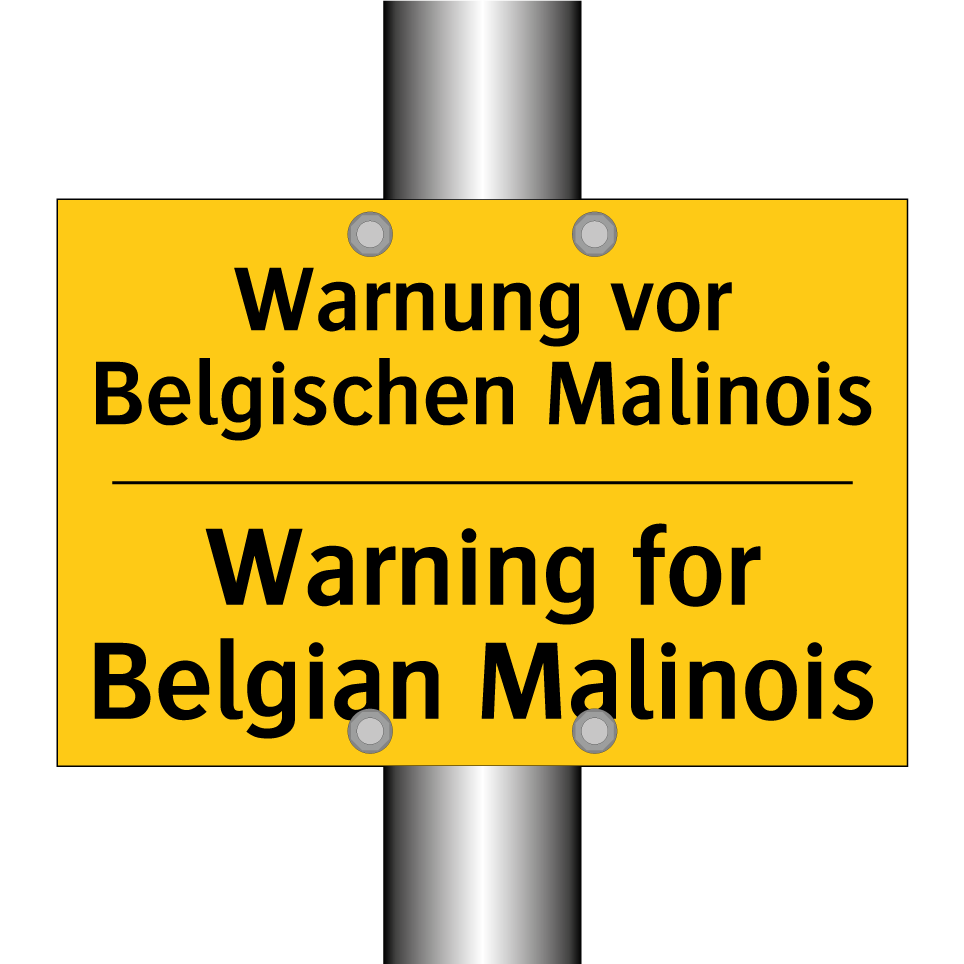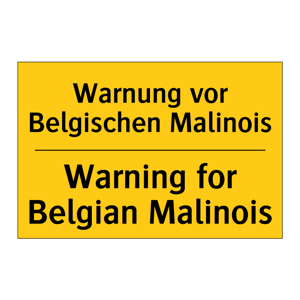 Zweisprachiges Warnschild mit deutschem Text Warnung vor Belgischen Malinois und englischem Text Warning for Belgian Malinois