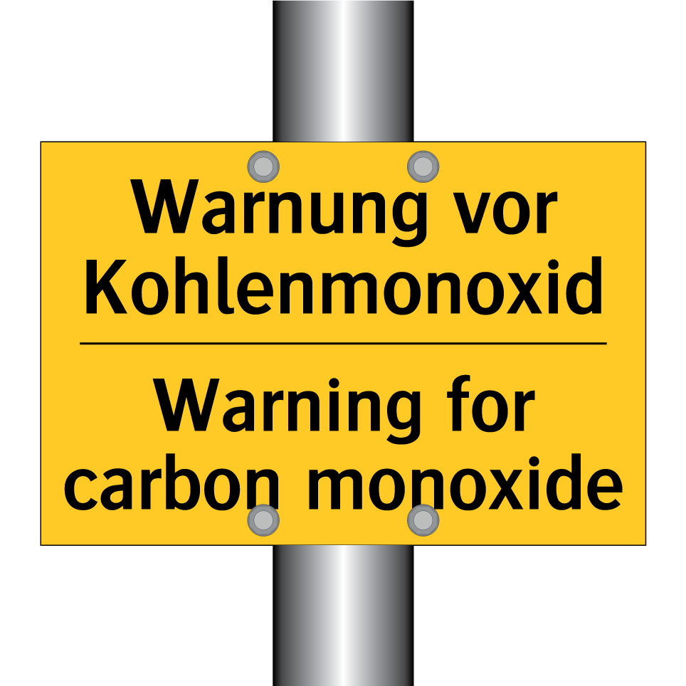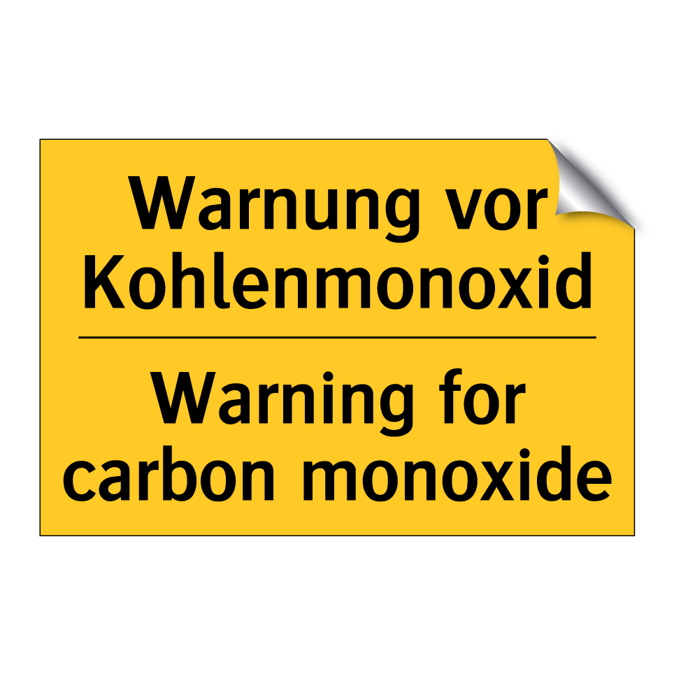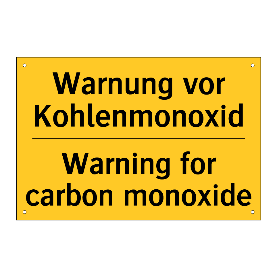 Zweisprachiges Warnschild mit deutschem Text Warnung vor Kohlenmonoxid und englischem Text Warning for carbon monoxide