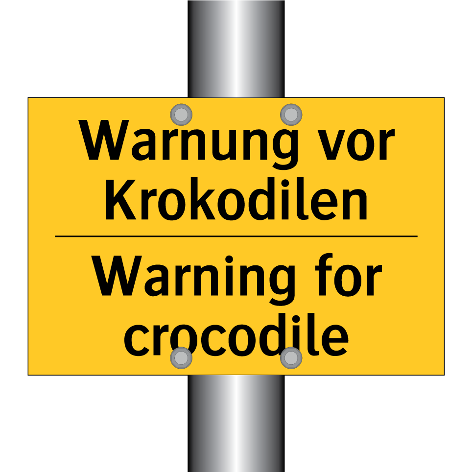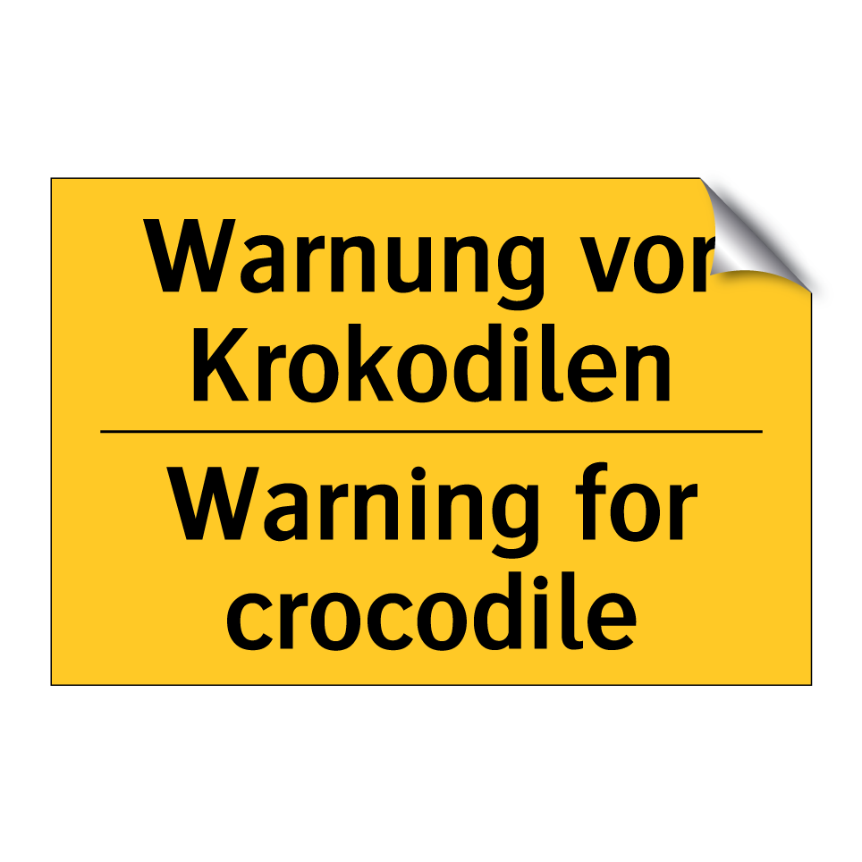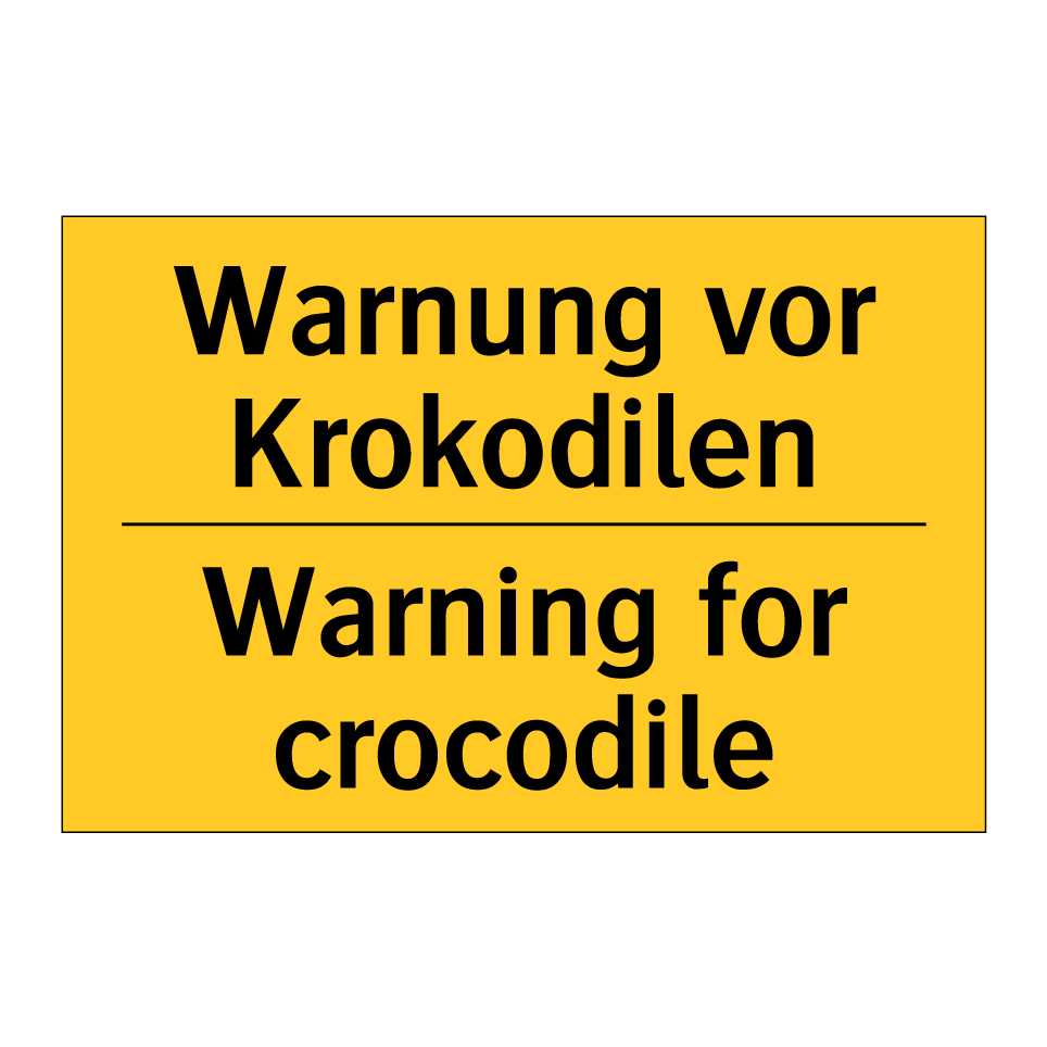 Zweisprachiges Warnschild mit deutschem Text Warnung vor Krokodilen und englischem Text Warning for crocodile