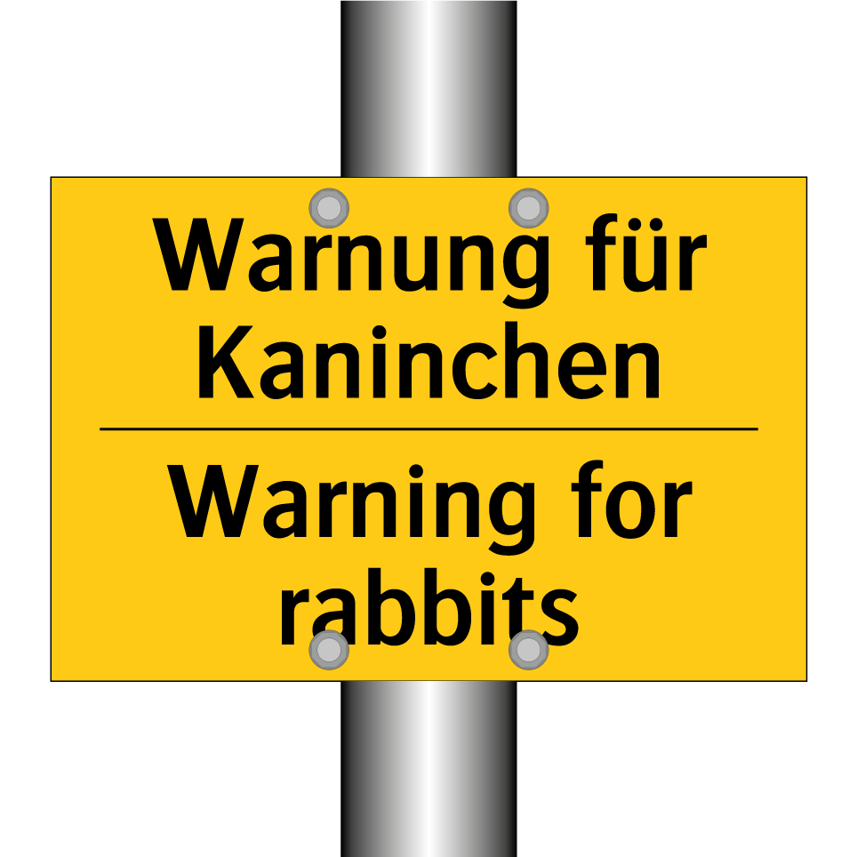 Zweisprachiges Warnschild mit deutschem Text Warnung für Kaninchen und englischem Text Warning for rabbits