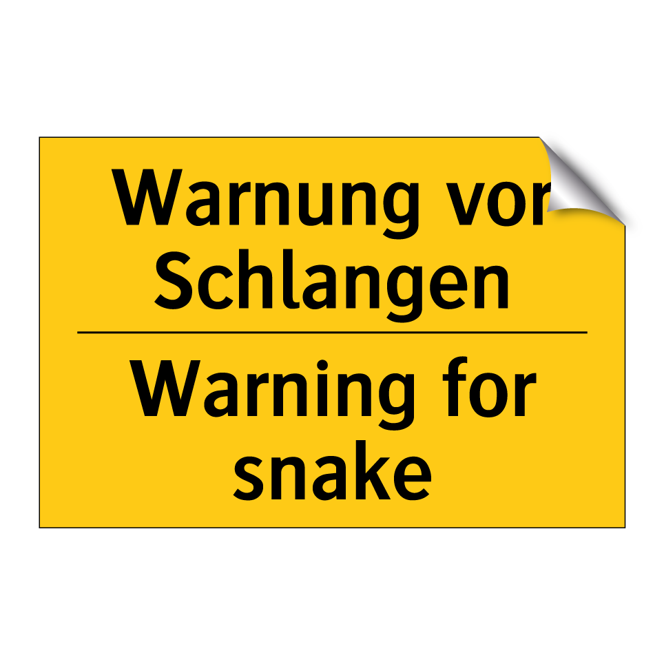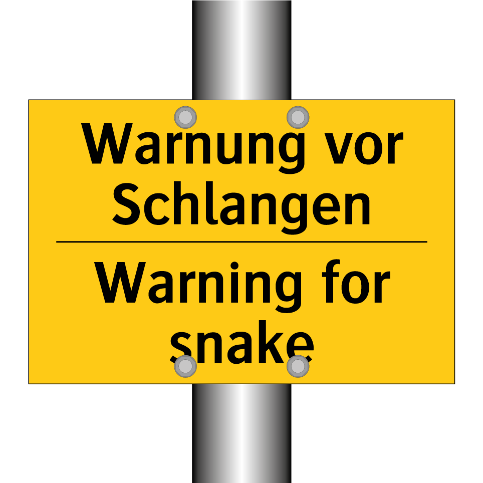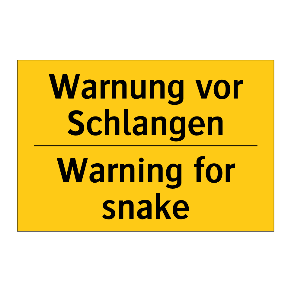 Zweisprachiges Warnschild mit deutschem Text Warnung vor Schlangen und englischem Text Warning for snake