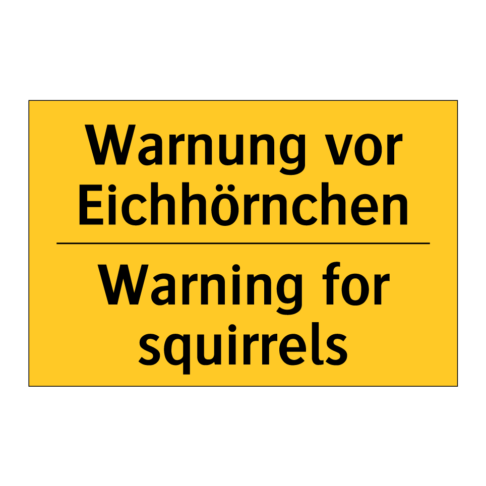 Zweisprachiges Warnschild mit deutschem Text Warnung vor Eichhörnchen und englischem Text Warning for squirrels