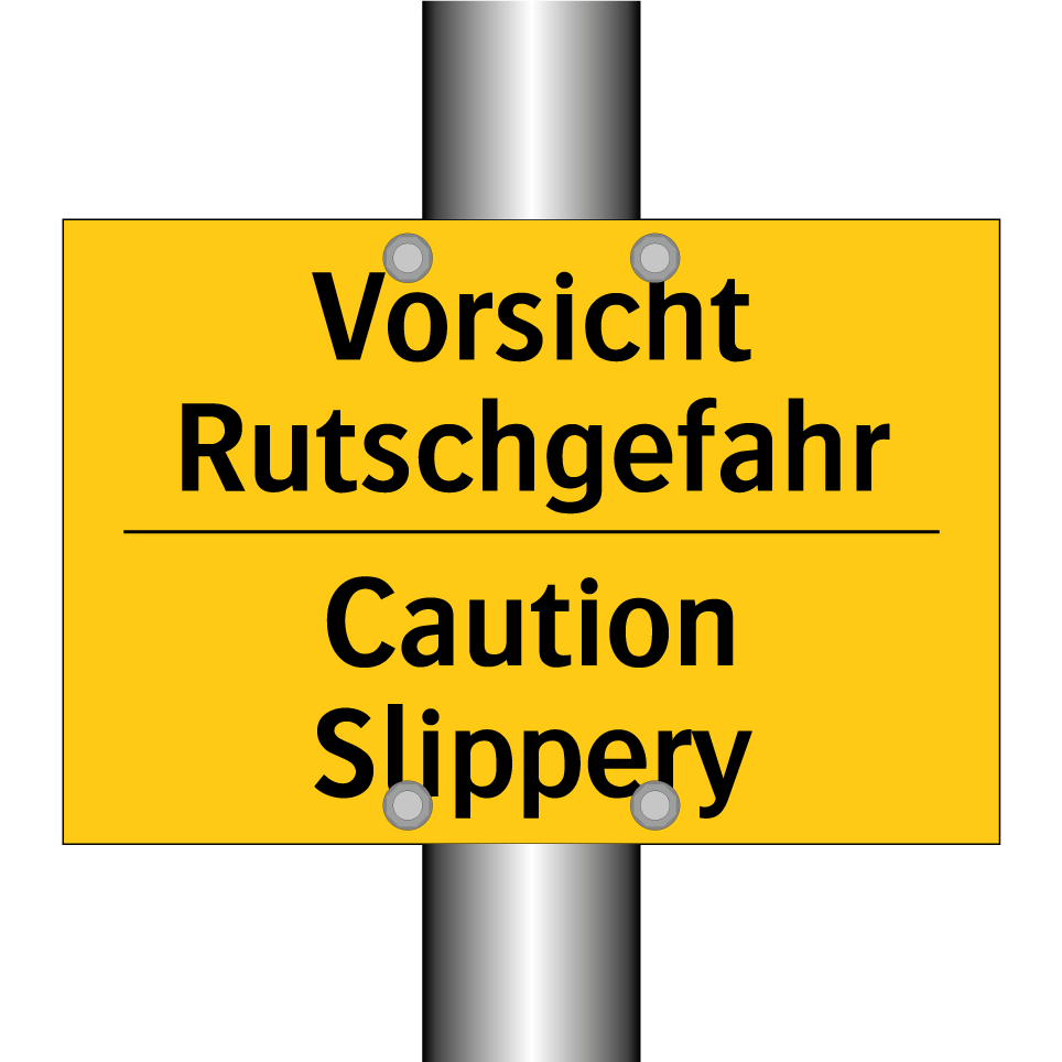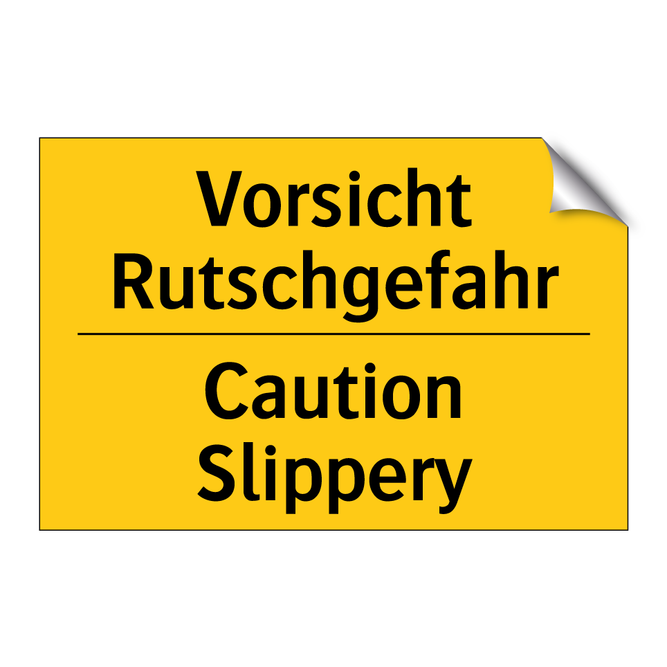 Zweisprachiges Warnschild mit deutschem Text Vorsicht Rutschgefahr und englischem Text Caution Slippery