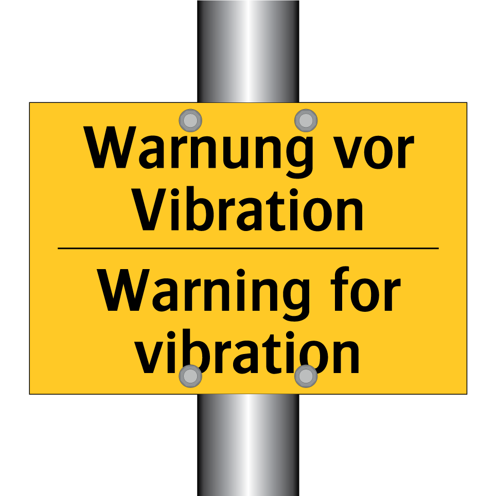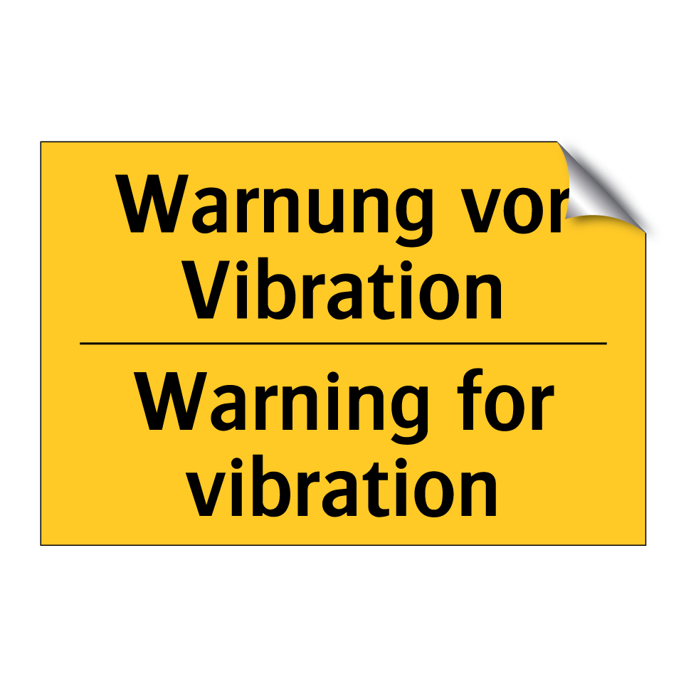 Zweisprachiges Warnschild mit deutschem Text Warnung vor Vibration und englischem Text Warning for vibration
