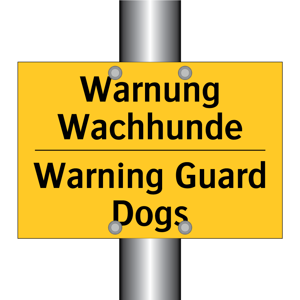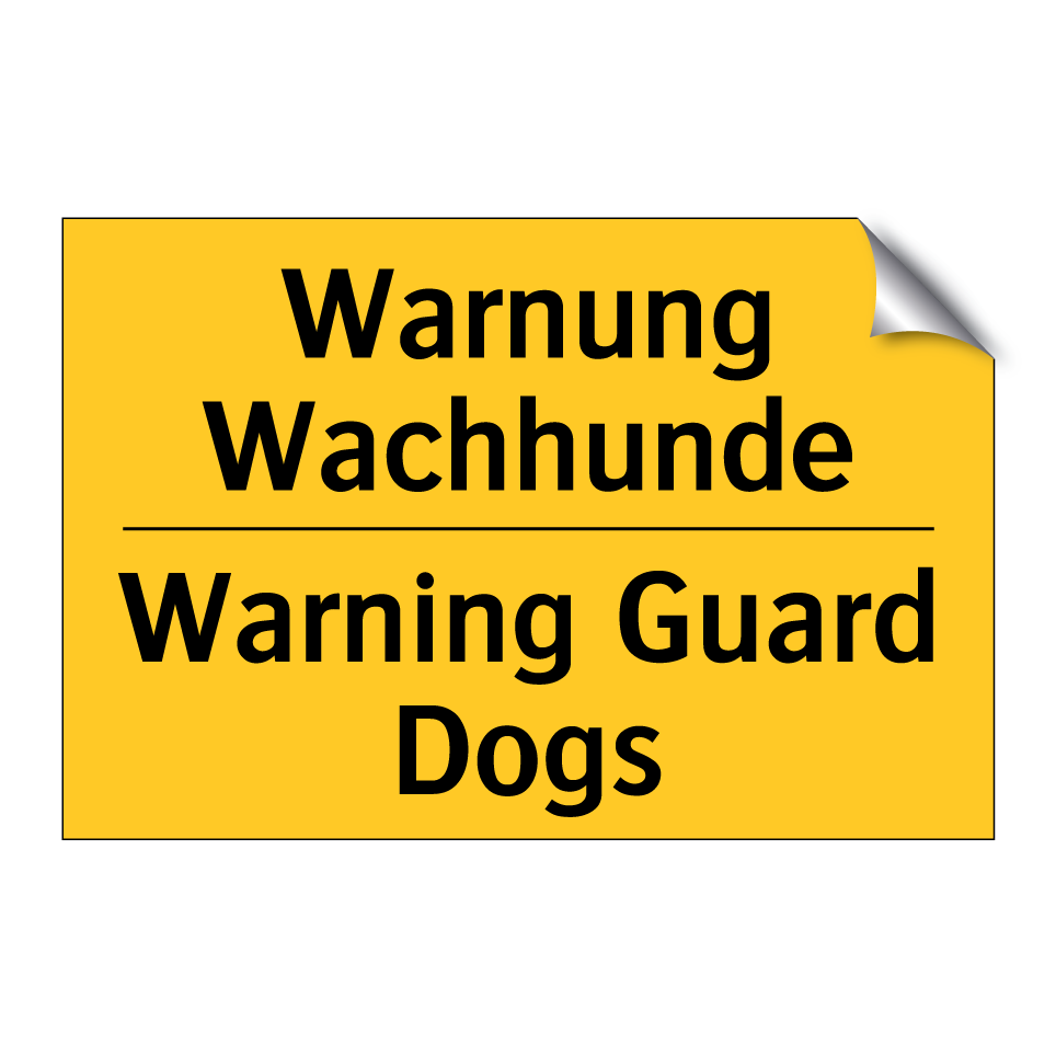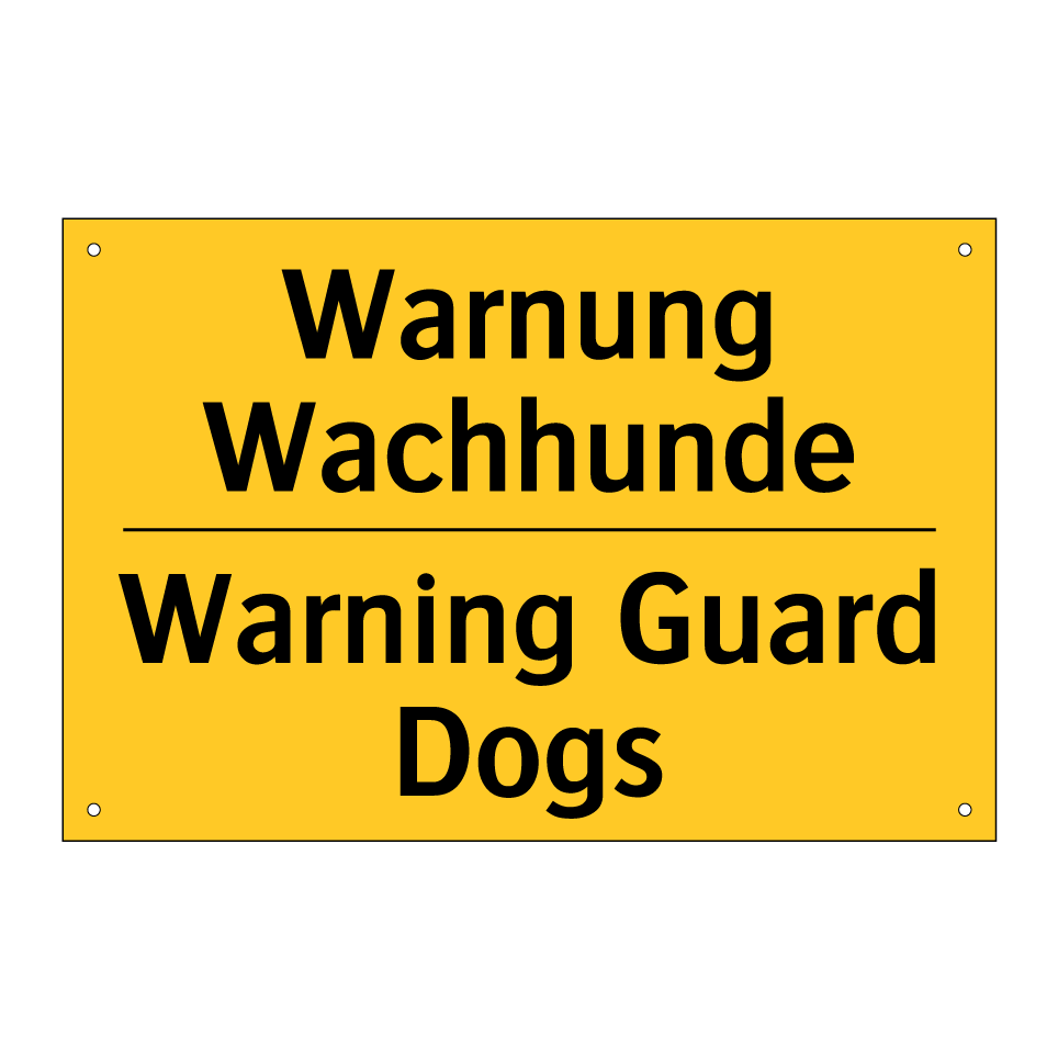 Zweisprachiges Warnschild mit deutschem Text Warnung Wachhunde und englischem Text Warning Guard Dogs