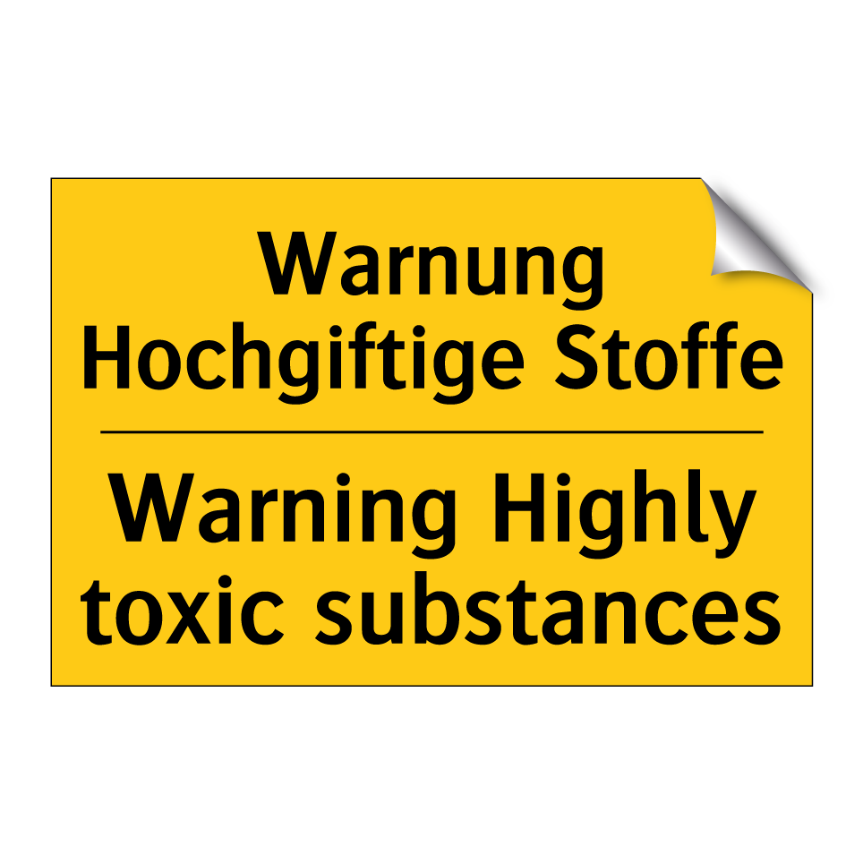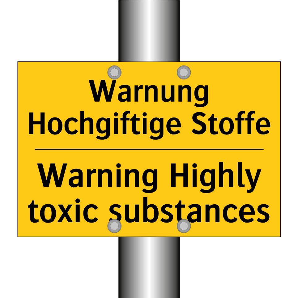 Zweisprachiges Warnschild mit deutschem Text Warnung Hochgiftige Stoffe und englischem Text Warning Highly toxic substances