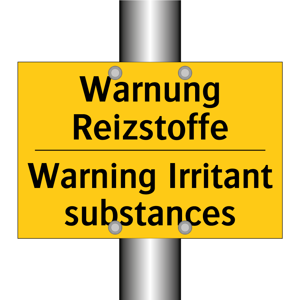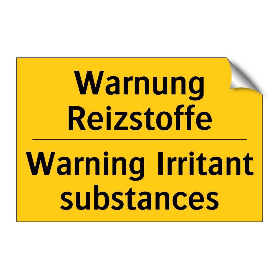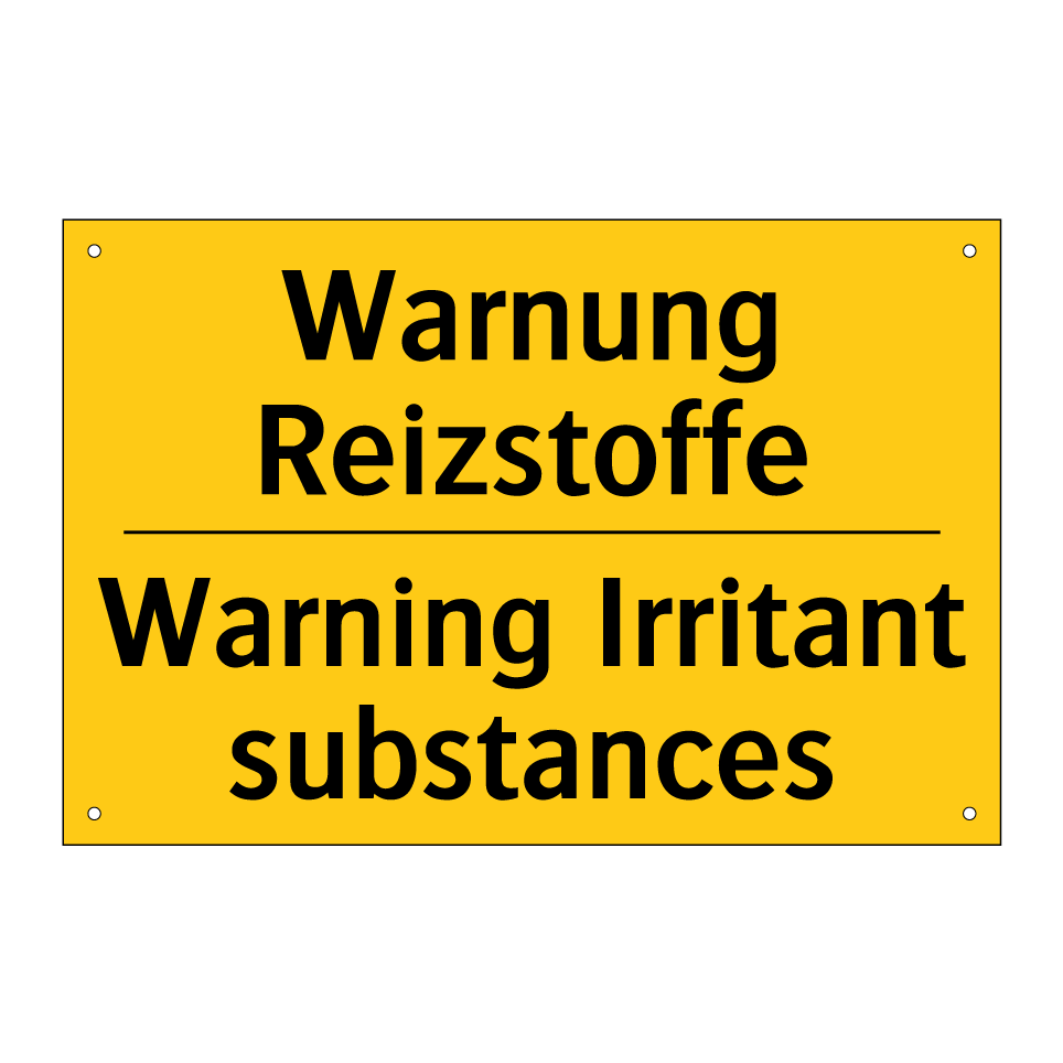 Zweisprachiges Warnschild mit deutschem Text Warnung Reizstoffe und englischem Text Warning Irritant substances