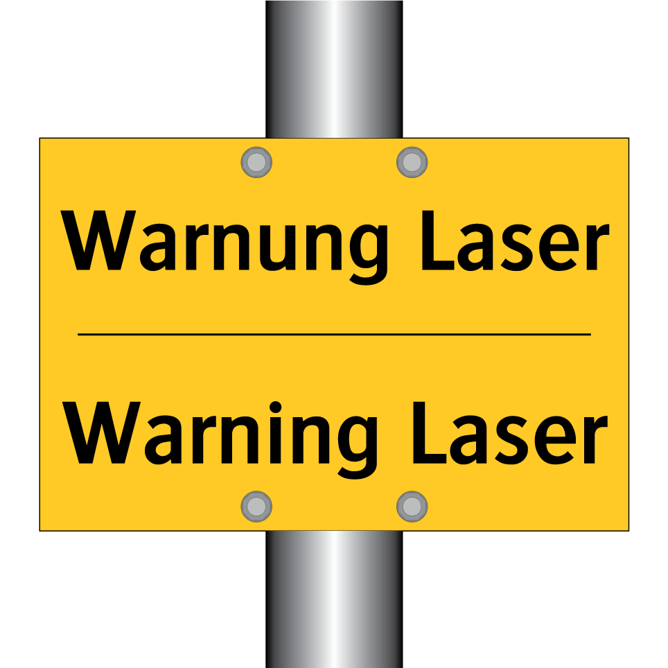 Zweisprachiges Warnschild mit deutschem Text Warnung Laser und englischem Text Warning Laser