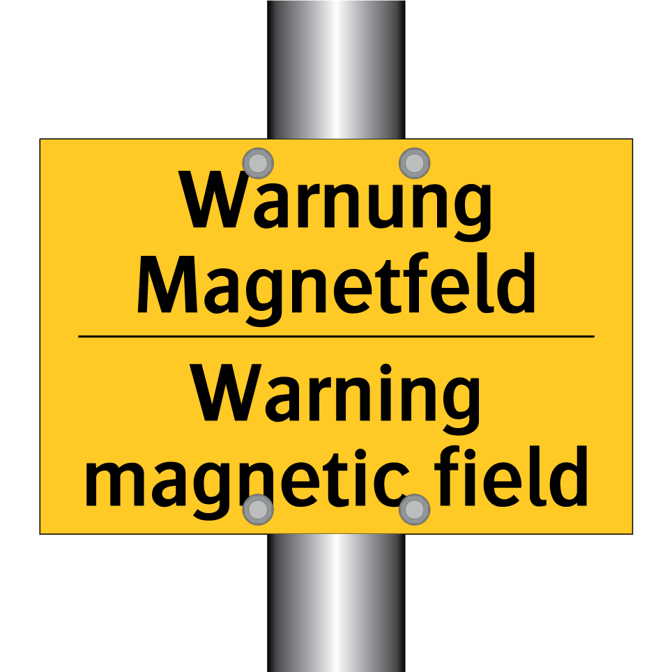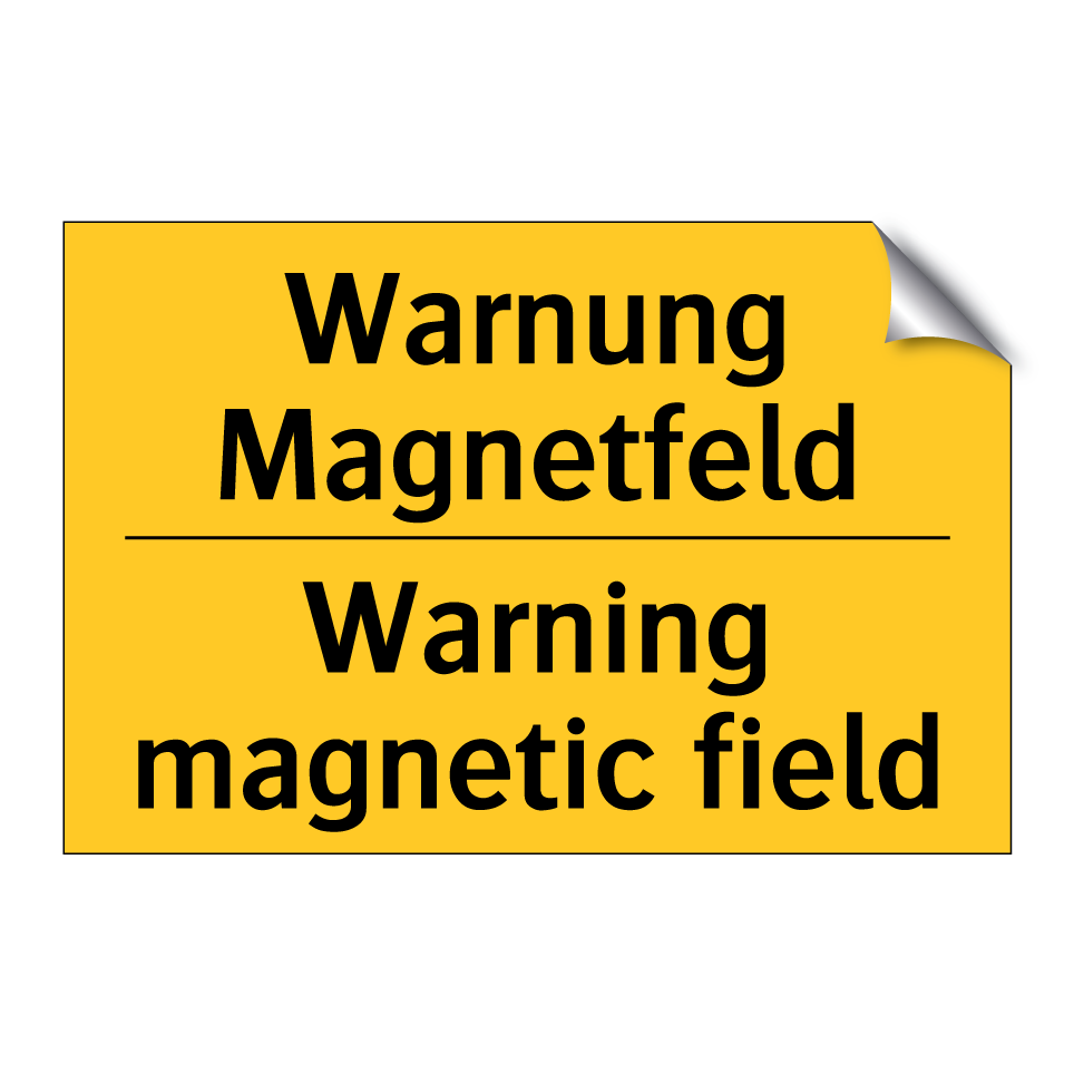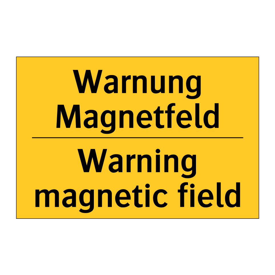 Zweisprachiges Warnschild mit deutschem Text Warnung Magnetfeld und englischem Text Warning magnetic field