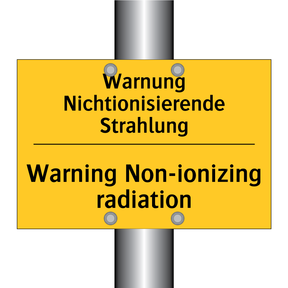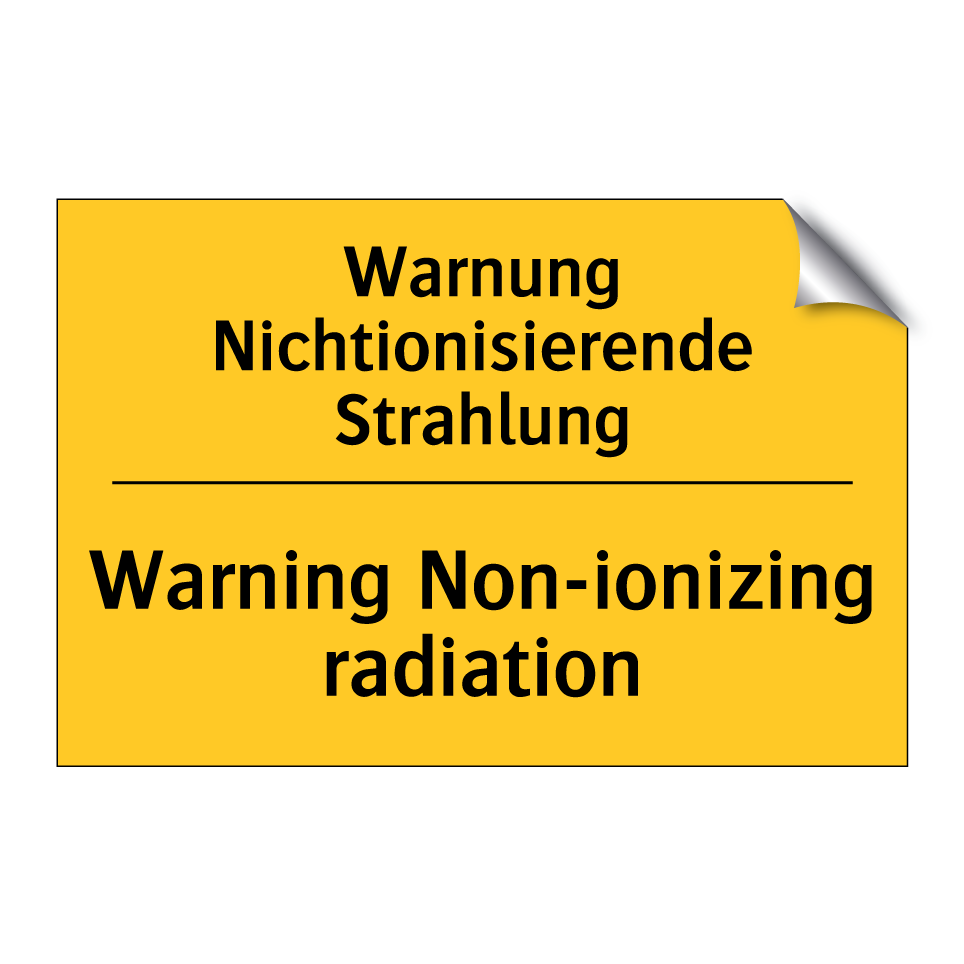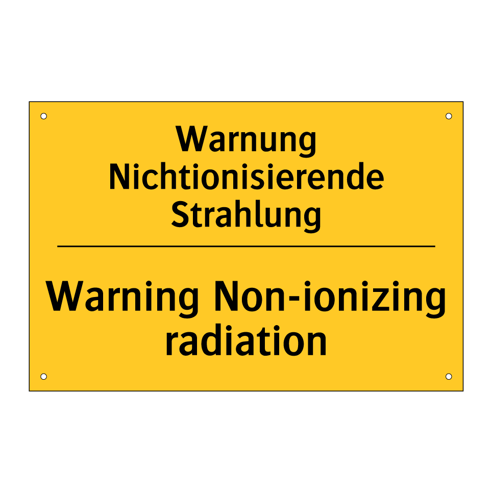 Zweisprachiges Warnschild mit deutschem Text Warnung Nichtionisierende Strahlung und englischem Text Warning Non-ionizing radiation