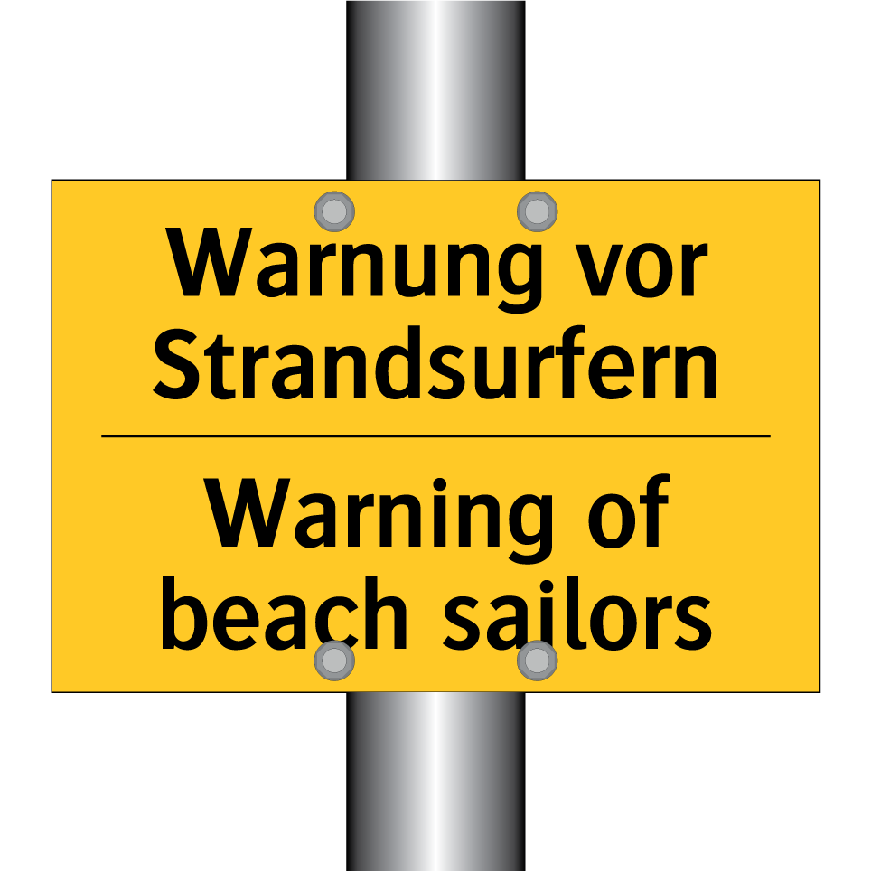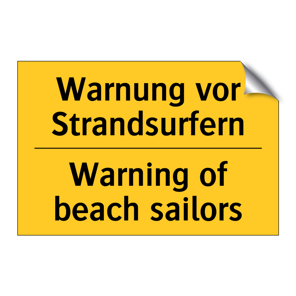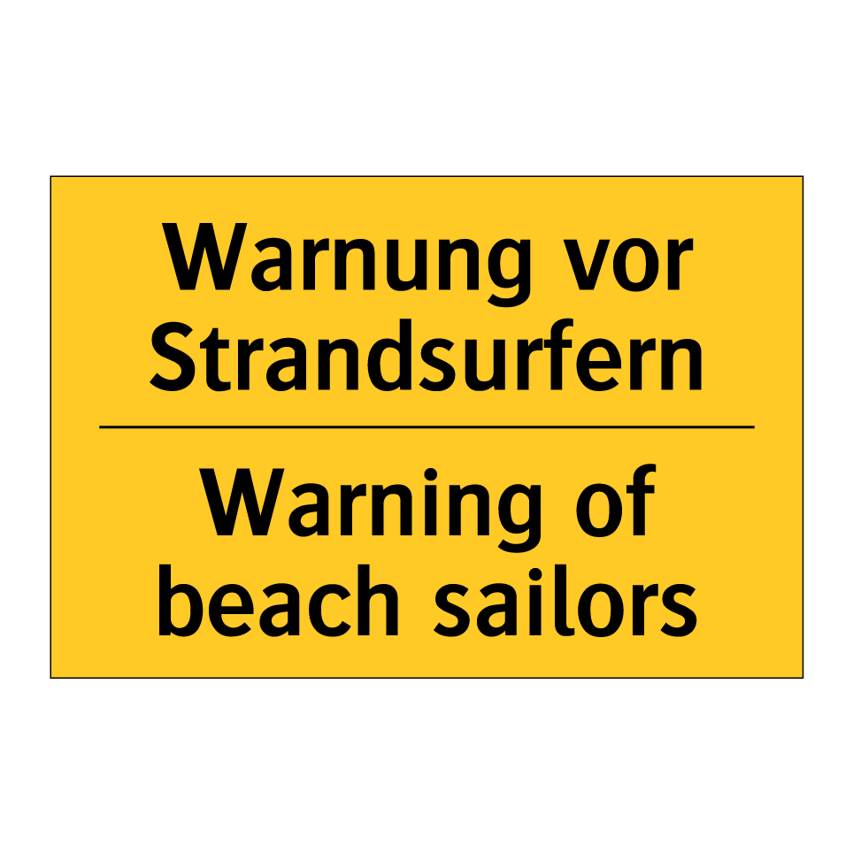 Zweisprachiges Warnschild mit deutschem Text Warnung vor Strandsurfern und englischem Text Warning of beach sailors