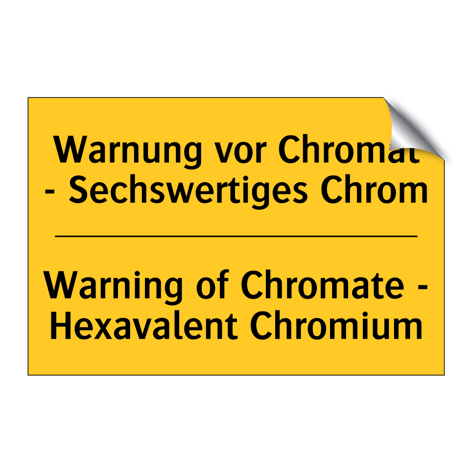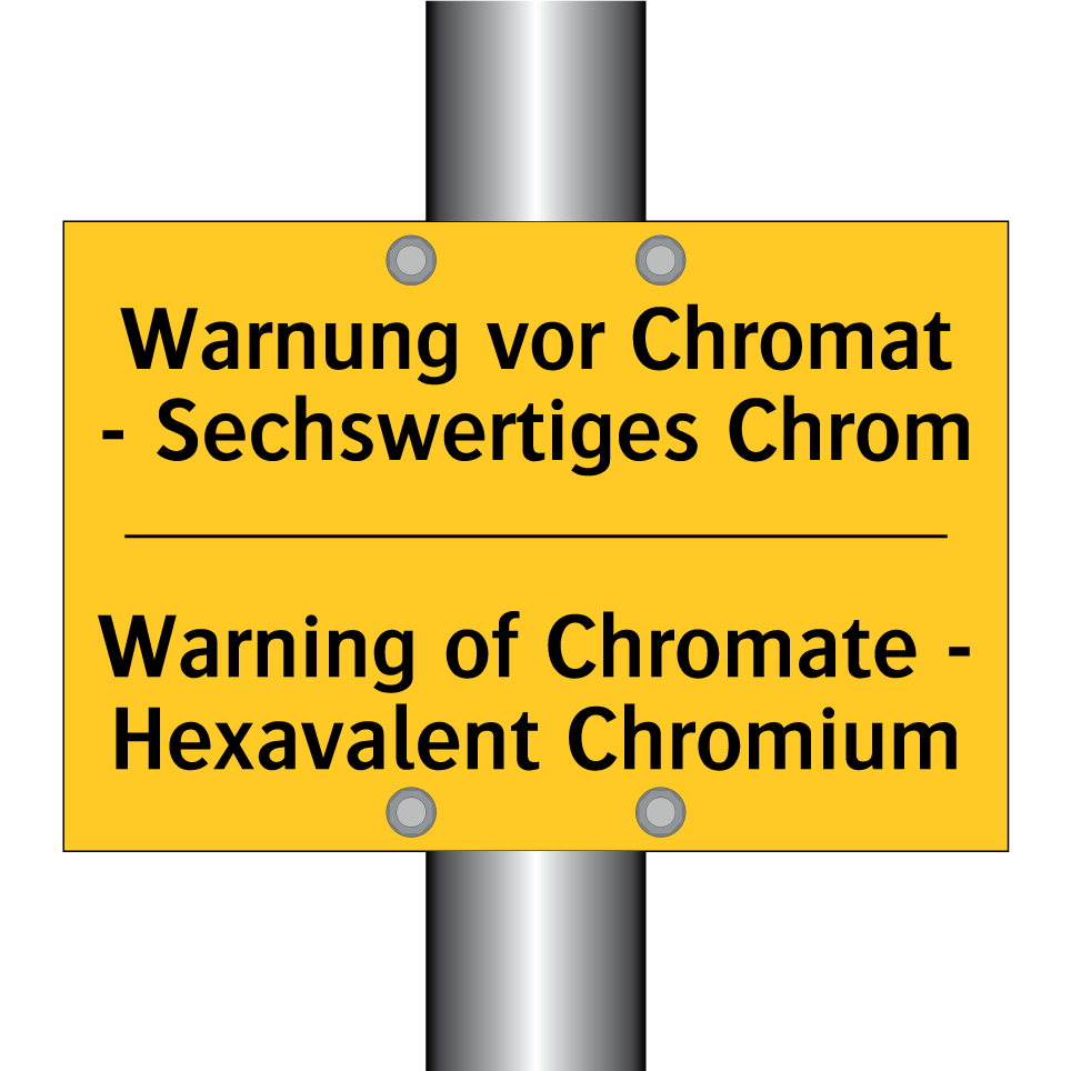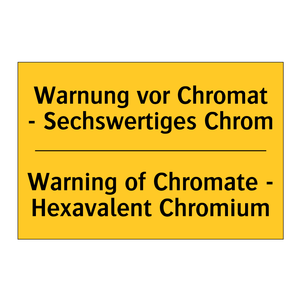 Zweisprachiges Warnschild mit deutschem Text Warnung vor Chromat - Sechswertiges Chrom und englischem Text Warning of Chromate - Hexavalent Chromium